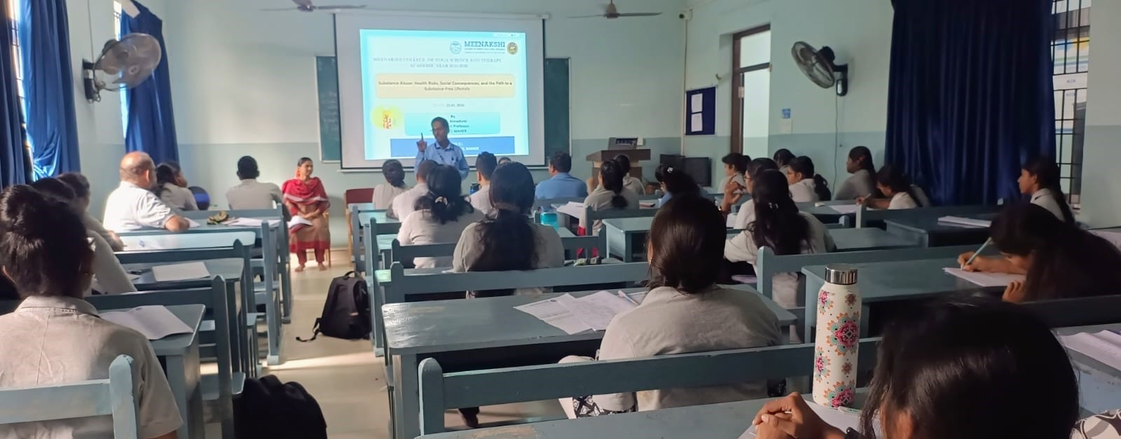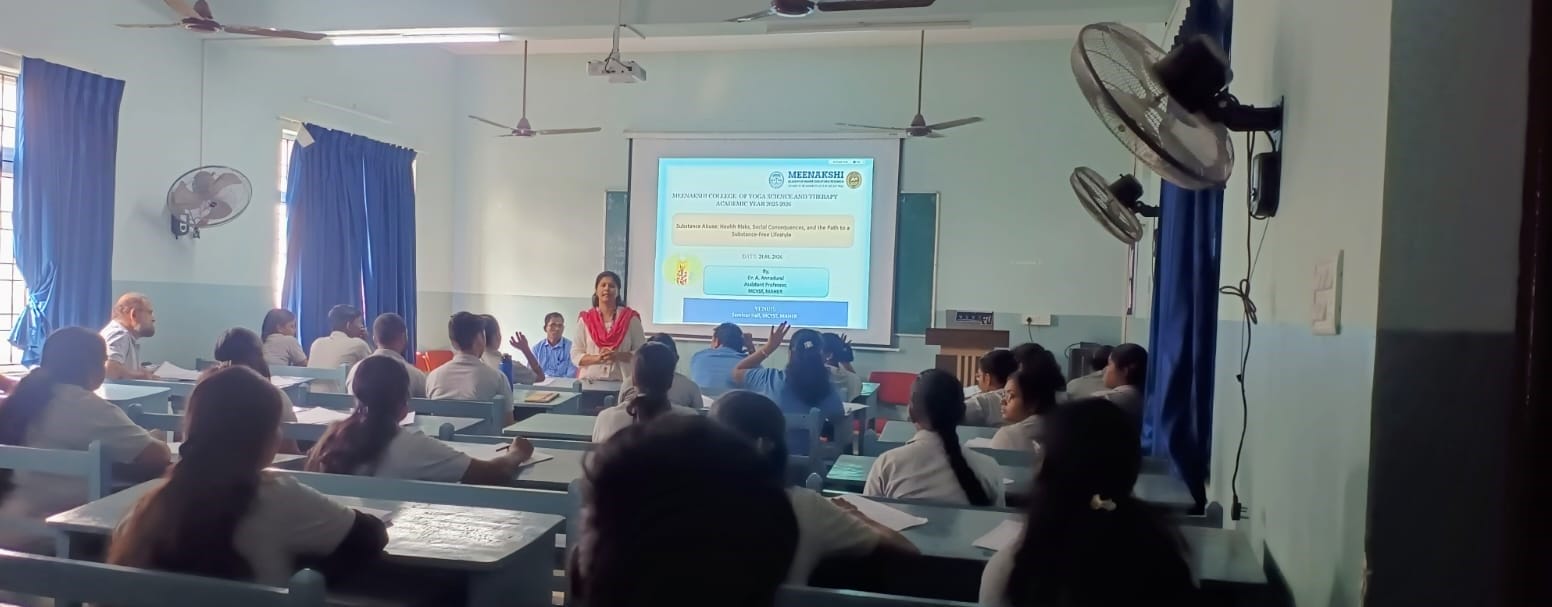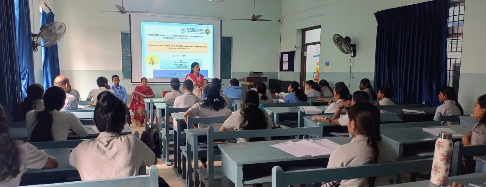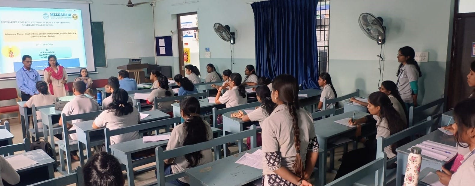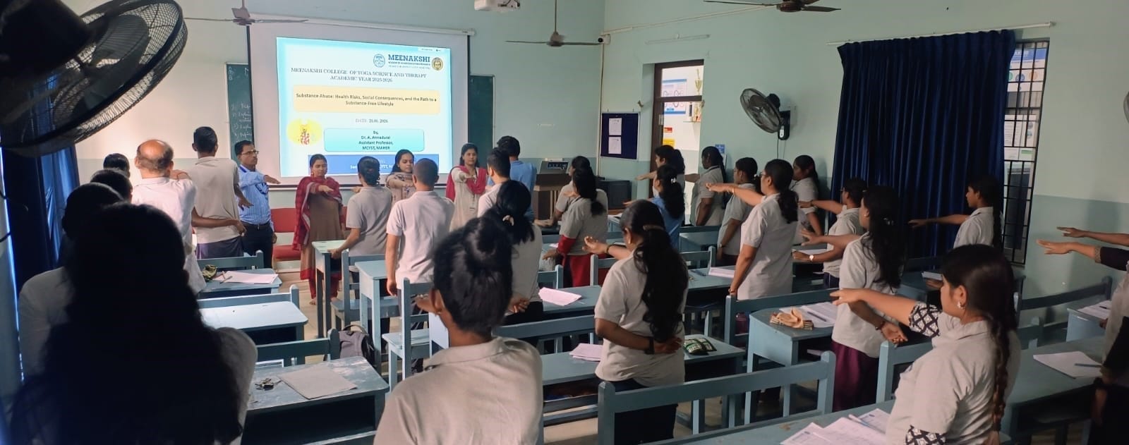 Meenakshi College of Yoga Science and Therapy (MCYST), MAHER, organized the Nasha Mukt Bharat Abhiyaan (NMBA) – Awareness and Pledge-taking Programme on 21 January 2025 with the aim of promoting a drug-free lifestyle and strengthening awareness on substance abuse among the academic community. The programme was conducted as part of the national initiative to empower youth and educational institutions in combating drug and alcohol abuse.
