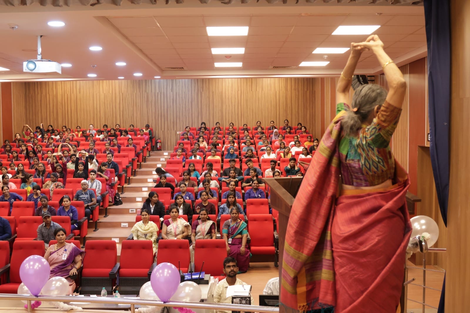 The event commenced with Tamil Thai Vazhthu, followed by the traditional lighting of the Kuthuvilakku. Prof. Dr. V. Subbulakshmi, Principal, MCYST, delivered the welcome address, emphasizing the importance of celebrating women’s contributions to society and highlighting the role of yoga and holistic therapies in promoting physical and mental well-being.
