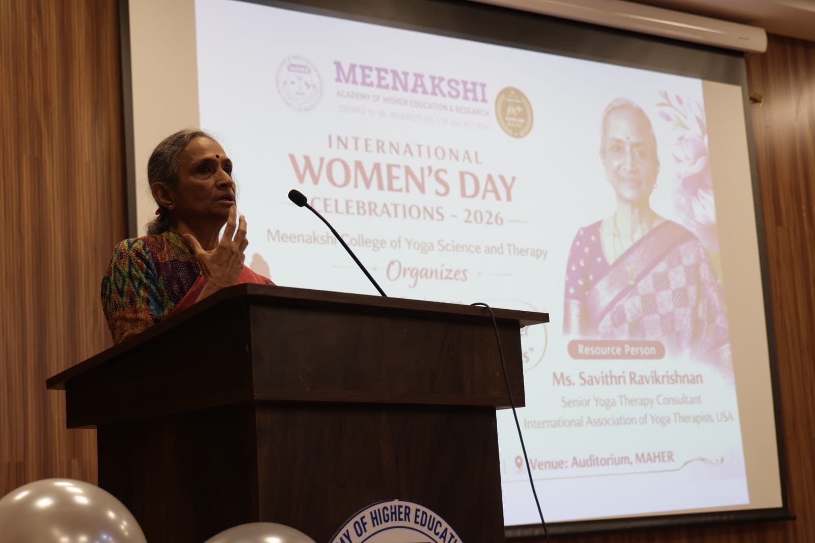 On the occasion of International Women’s Day – 2026, Meenakshi College of Yoga Science and Therapy (MCYST), MAHER, organized a seminar on “The Transformative Power of Sound in Yogic Practices” on 10th March 2026 at the MAHER Auditorium. The programme focused on promoting holistic well-being and recognizing the role of integrative practices in enhancing women’s health.