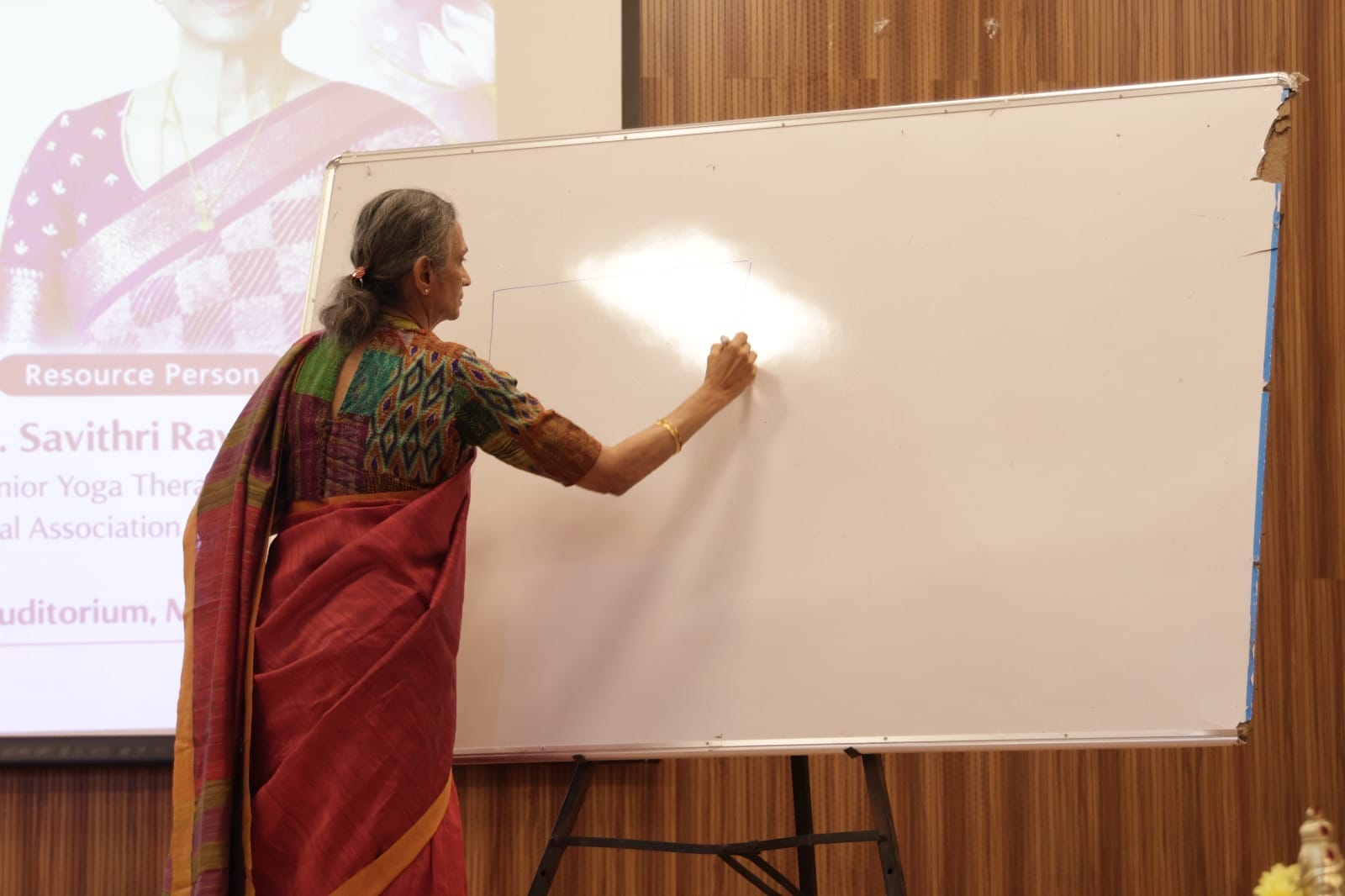 Dr. P. Karthika introduced the Chief Guest, Ms. Savithri Ravikrishnan, Senior Yoga Therapy Consultant, International Association of Yoga Therapists. In her keynote session, Ms. Savithri Ravikrishnan elaborated on the therapeutic potential of sound vibrations and mantra chanting. She explained how these practices influence the body, mind, and consciousness, contributing to stress reduction, emotional balance, and overall holistic health.