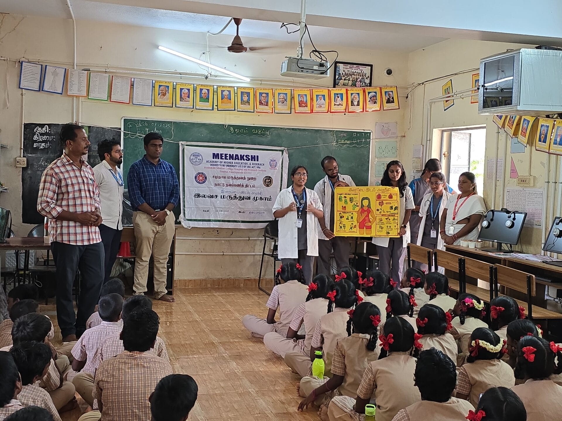 In anticipation of the upcoming monsoon season, the Department of Community Medicine, Meenakshi Medical College and Research Institute (MMCHRI), Kanchipuram, organized an outreach health education programme on the prevention of acute gastroenteritis. The session was conducted for the students of Panchayat Union Middle School, Thirupanangadu Village.