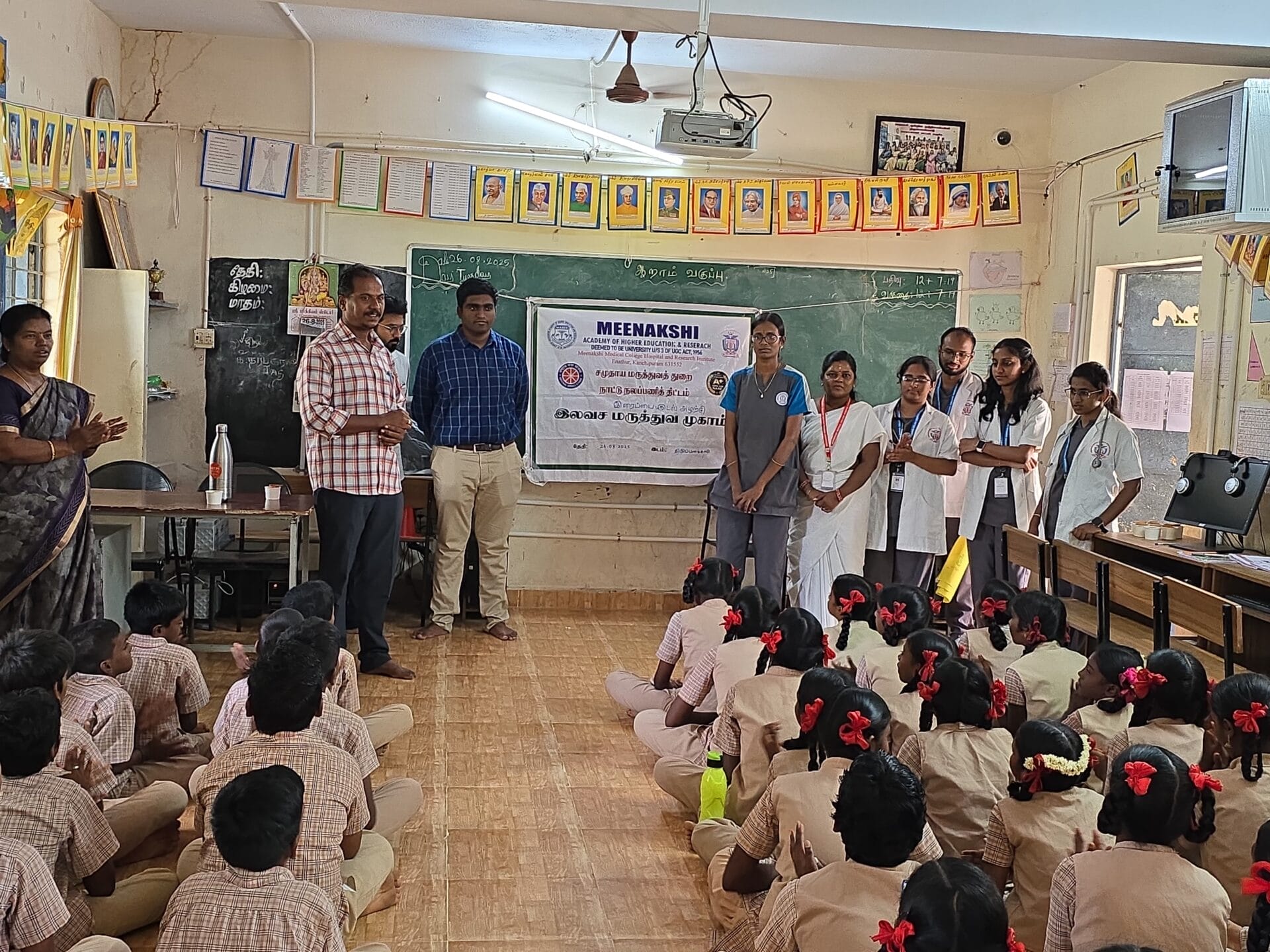 In anticipation of the upcoming monsoon season, the Department of Community Medicine, Meenakshi Medical College and Research Institute (MMCHRI), Kanchipuram, organized an outreach health education programme on the prevention of acute gastroenteritis. The session was conducted for the students of Panchayat Union Middle School, Thirupanangadu Village.