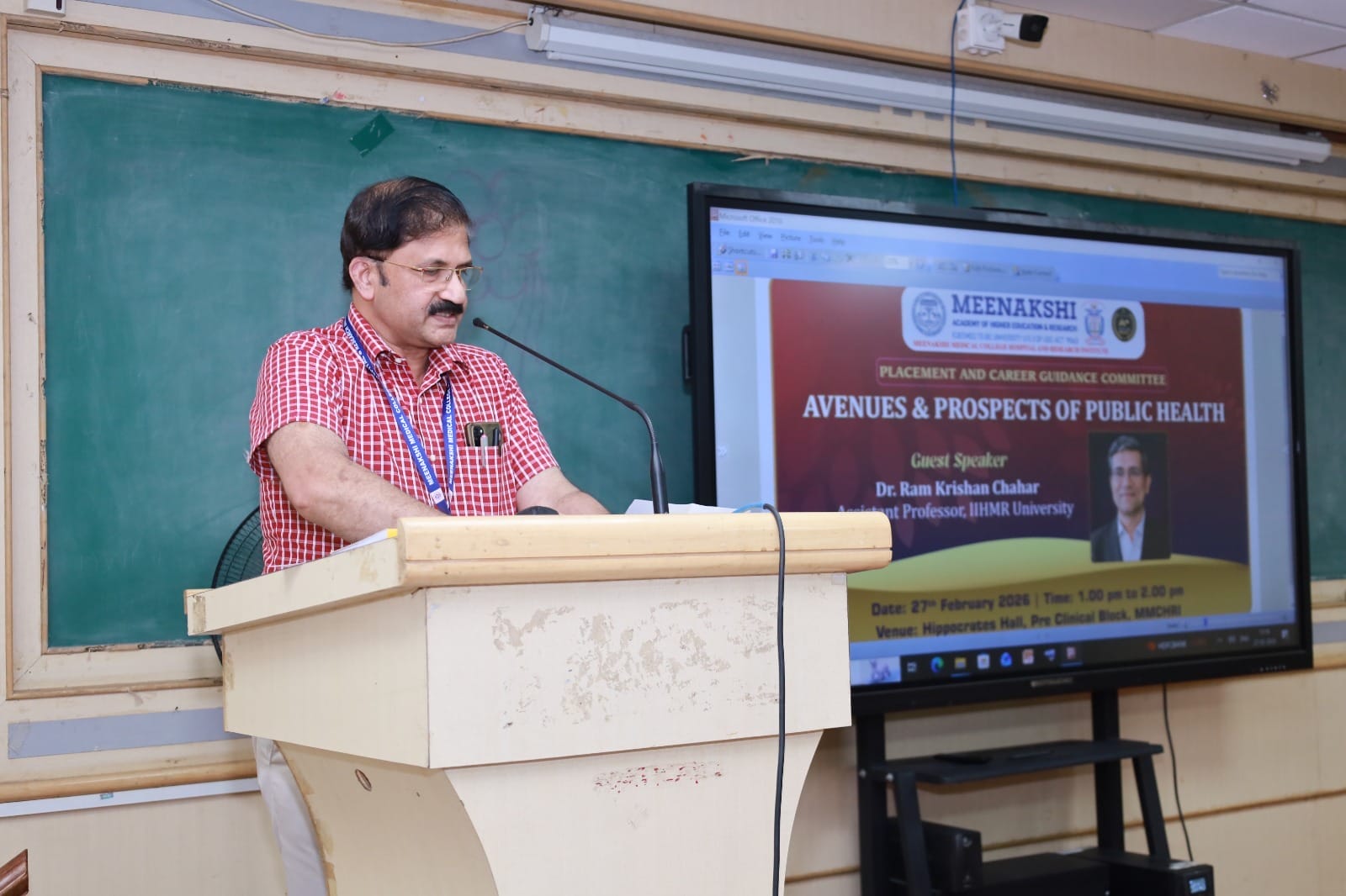 The Training, Placement and Career Guidance Committee of Meenakshi Medical College Hospital and Research Institute (MMCHRI) organized an insightful guest lecture on “Avenues & Prospects of Public Health” on 27th February 2026 at Hippocrates Hall, Pre-Clinical Block.