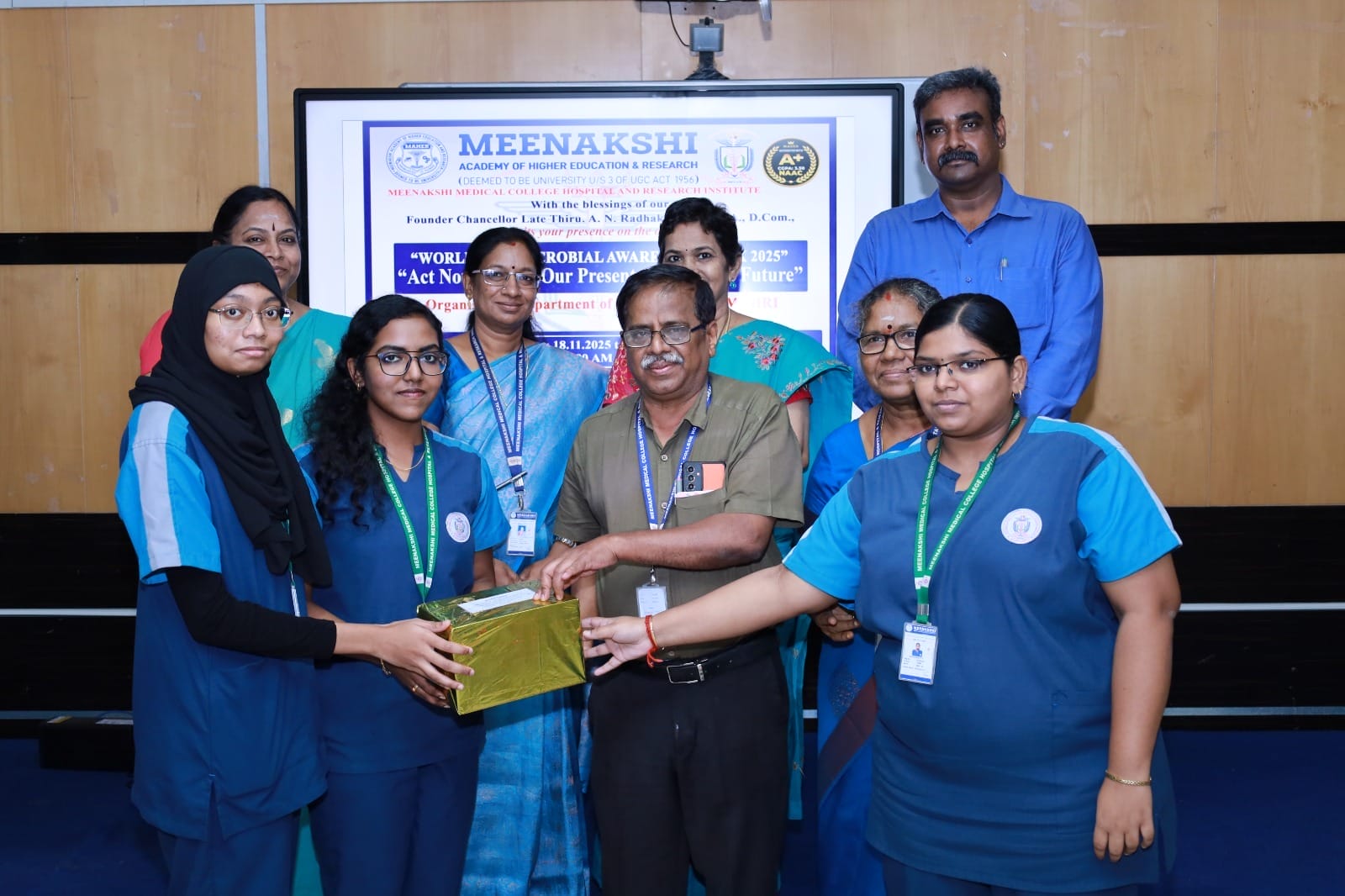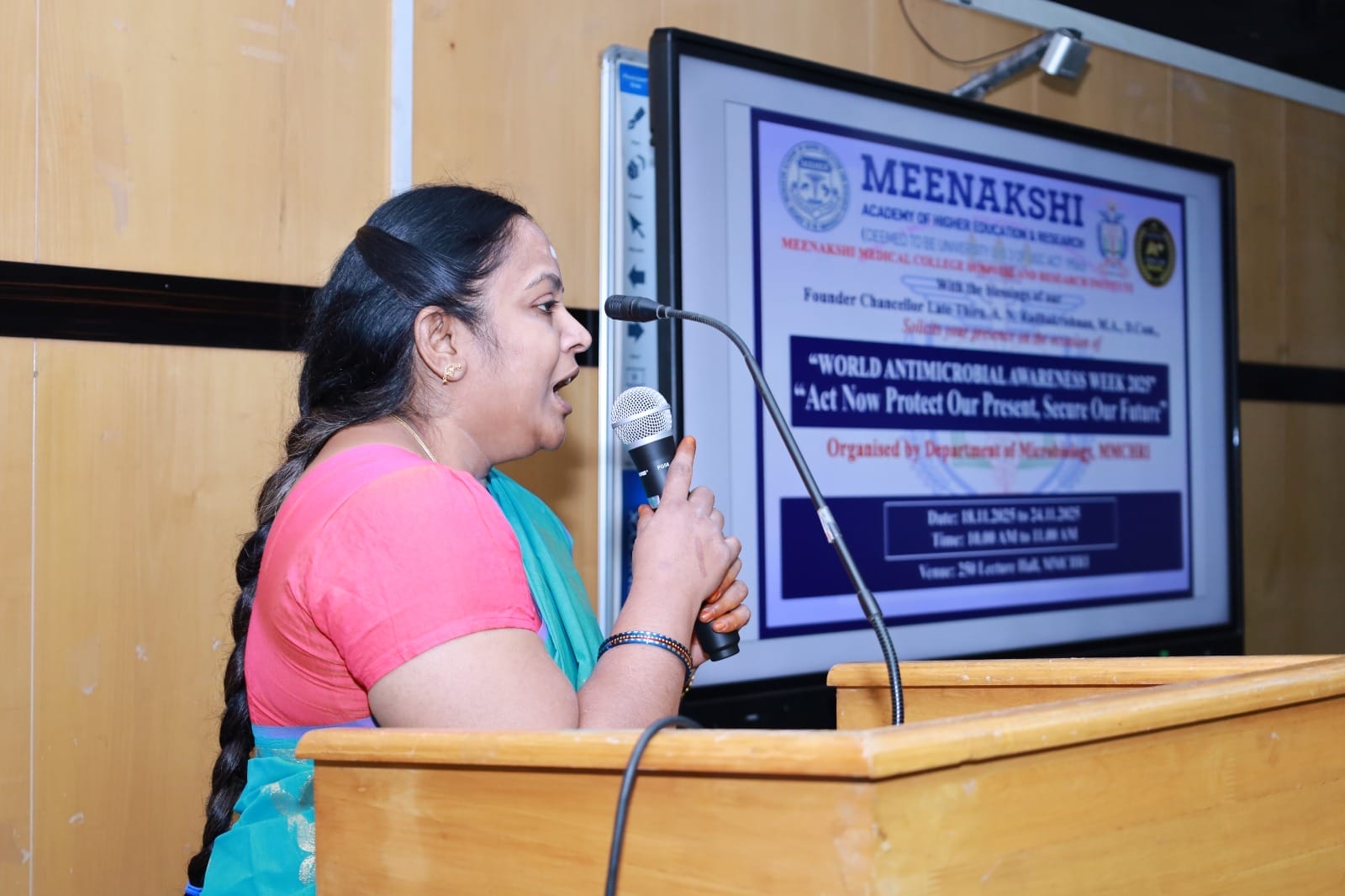The Department of Microbiology in collaboration with the Hospital Infection Control Committee (HICC) of Meenakshi Medical College Hospital & Research Institute successfully observed World Antimicrobial Awareness Week 2025 from 18 to 24 November 2025, under the global theme “Act Now, Protect Our Present, Secure Our Future.” The week-long observance was dedicated to promoting responsible antimicrobial use and strengthening awareness about antimicrobial resistance among students, healthcare professionals, and the public.