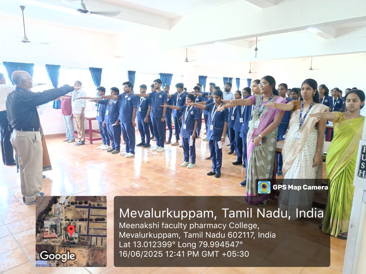 To commemorate World Blood Donor Day 2025, the Meenakshi Faculty of Pharmacy organized a pledge-taking ceremony on 16th June 2025 at the college premises. Themed “Give Blood, Give Hope: Together We Save Lives,” the event aimed to raise awareness about the life-saving value of voluntary blood donation.