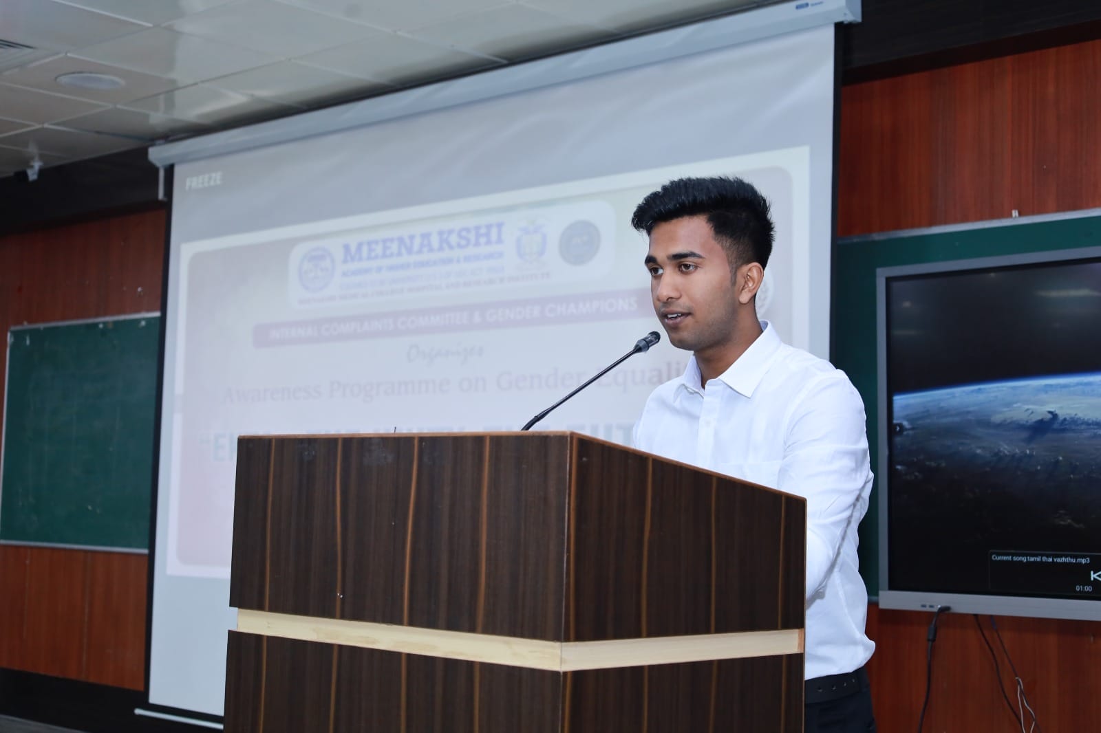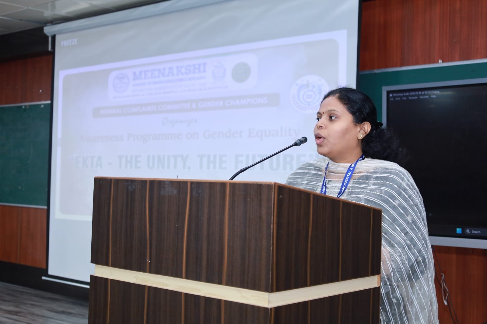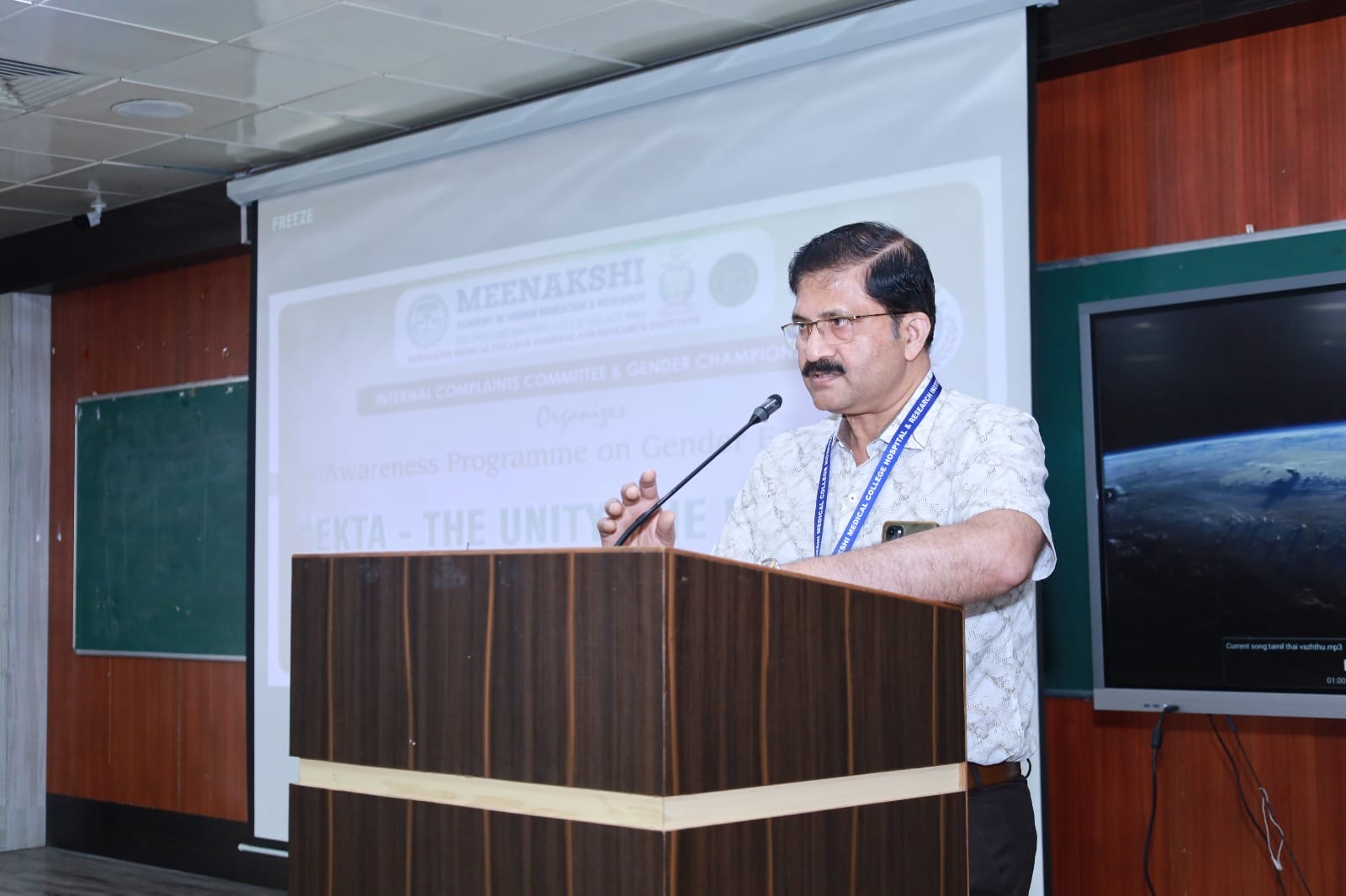 The Internal Complaints Committee (ICC) of Meenakshi Medical College Hospital and Research Institute (MMCHRI) organized a vibrant and thought-provoking college-level awareness programme on gender equality titled “EKTA – The Unity, The Future”, with the aim of fostering inclusivity, mutual respect, and gender sensitivity among students and faculty members.