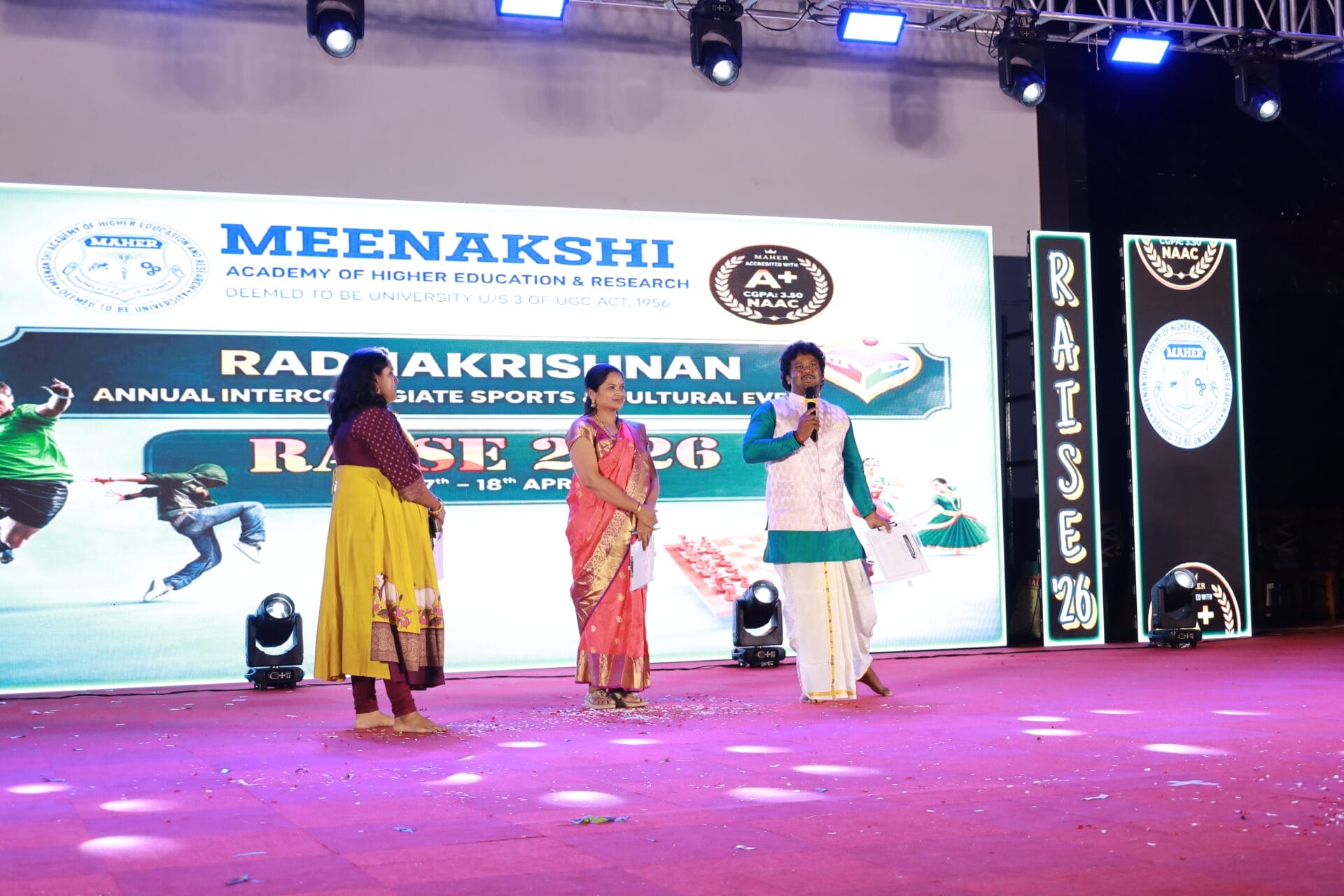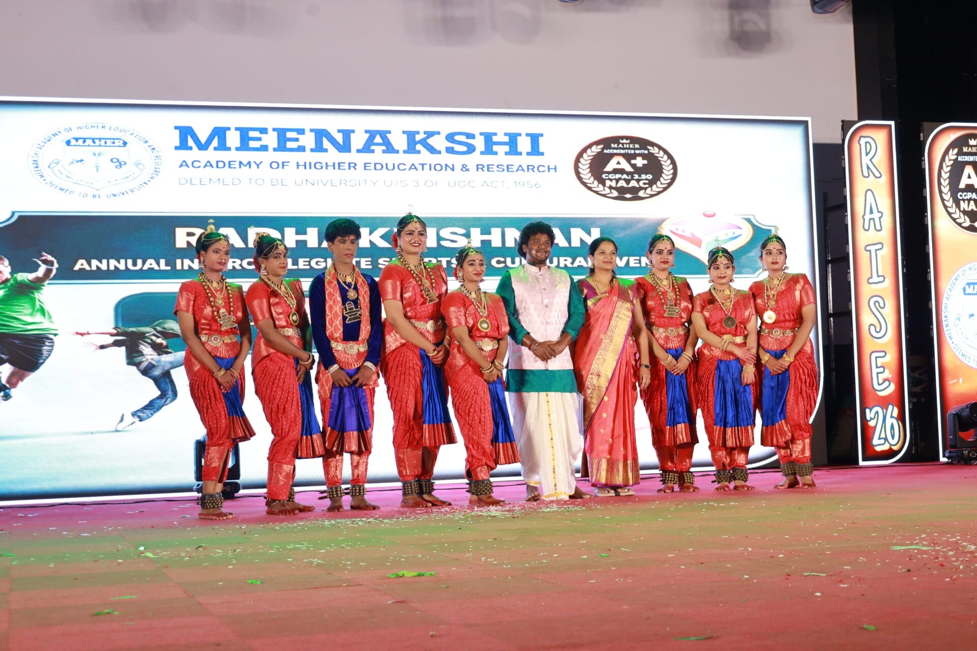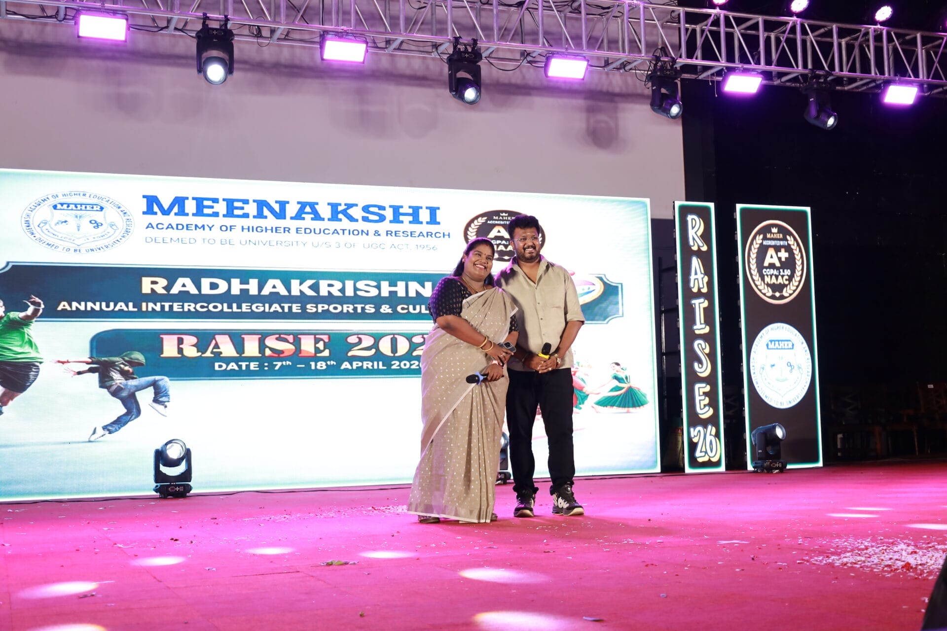 “RAISE 2026,” the Inter-College Cultural Fest of MAHER University, was held on 7th and 8th April 2026 at the Thiru A.N. Radhakrishnan Auditorium, Meenakshi Medical College Hospital and Research Institute (MMCHRI), marking Day 1 and Day 2 of the grand celebrations.