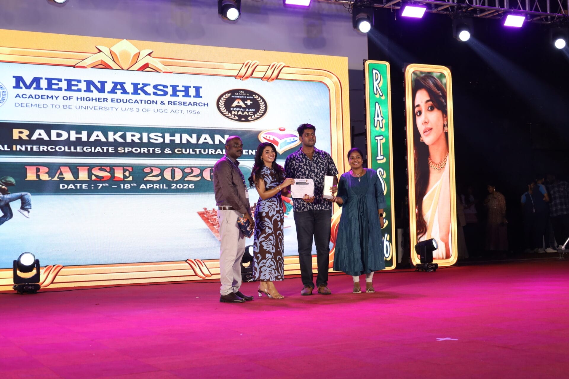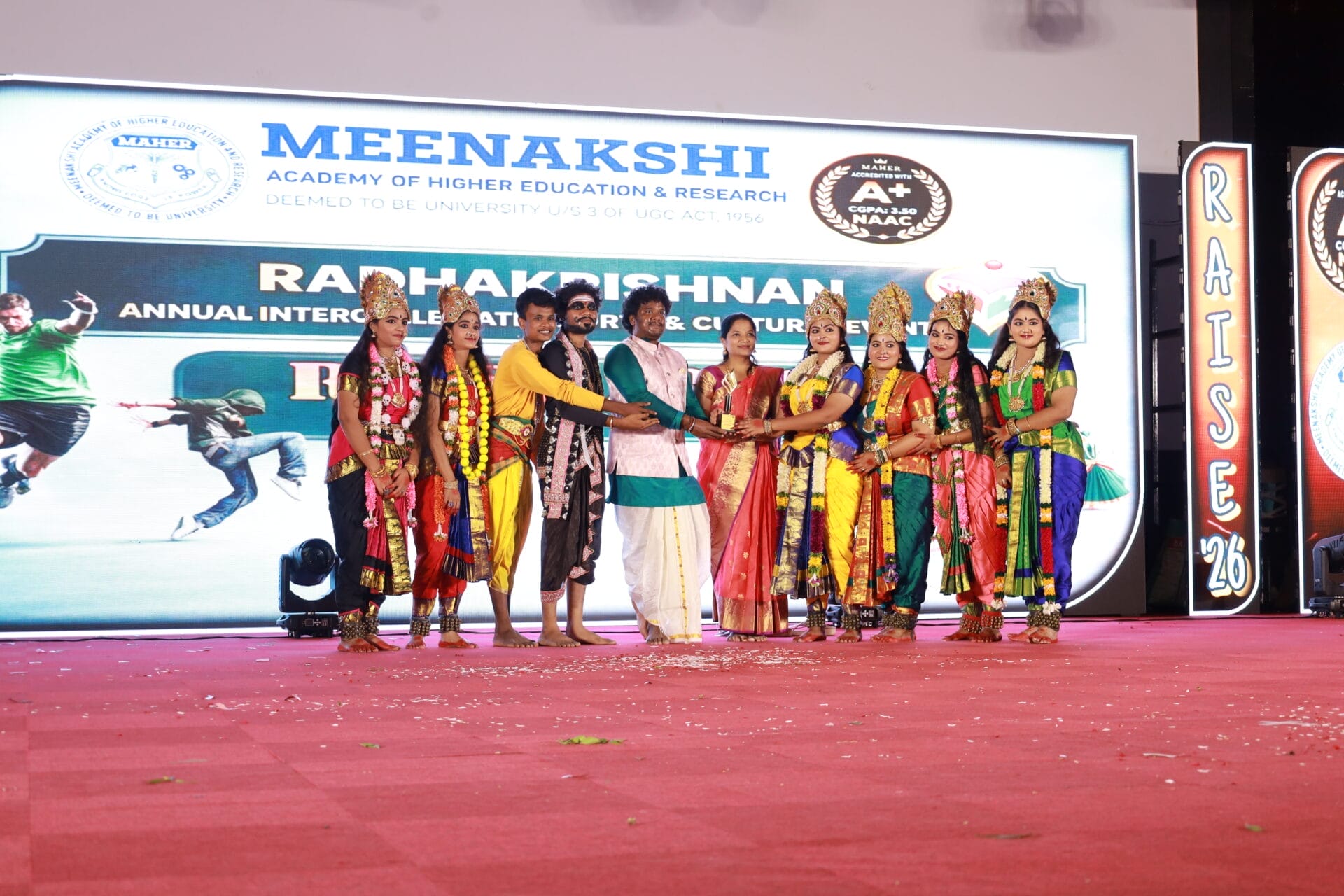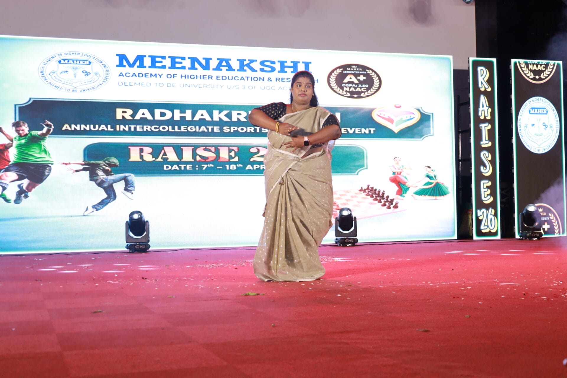 “RAISE 2026,” the Inter-College Cultural Fest of MAHER University, was held on 7th and 8th April 2026 at the Thiru A.N. Radhakrishnan Auditorium, Meenakshi Medical College Hospital and Research Institute (MMCHRI), marking Day 1 and Day 2 of the grand celebrations.