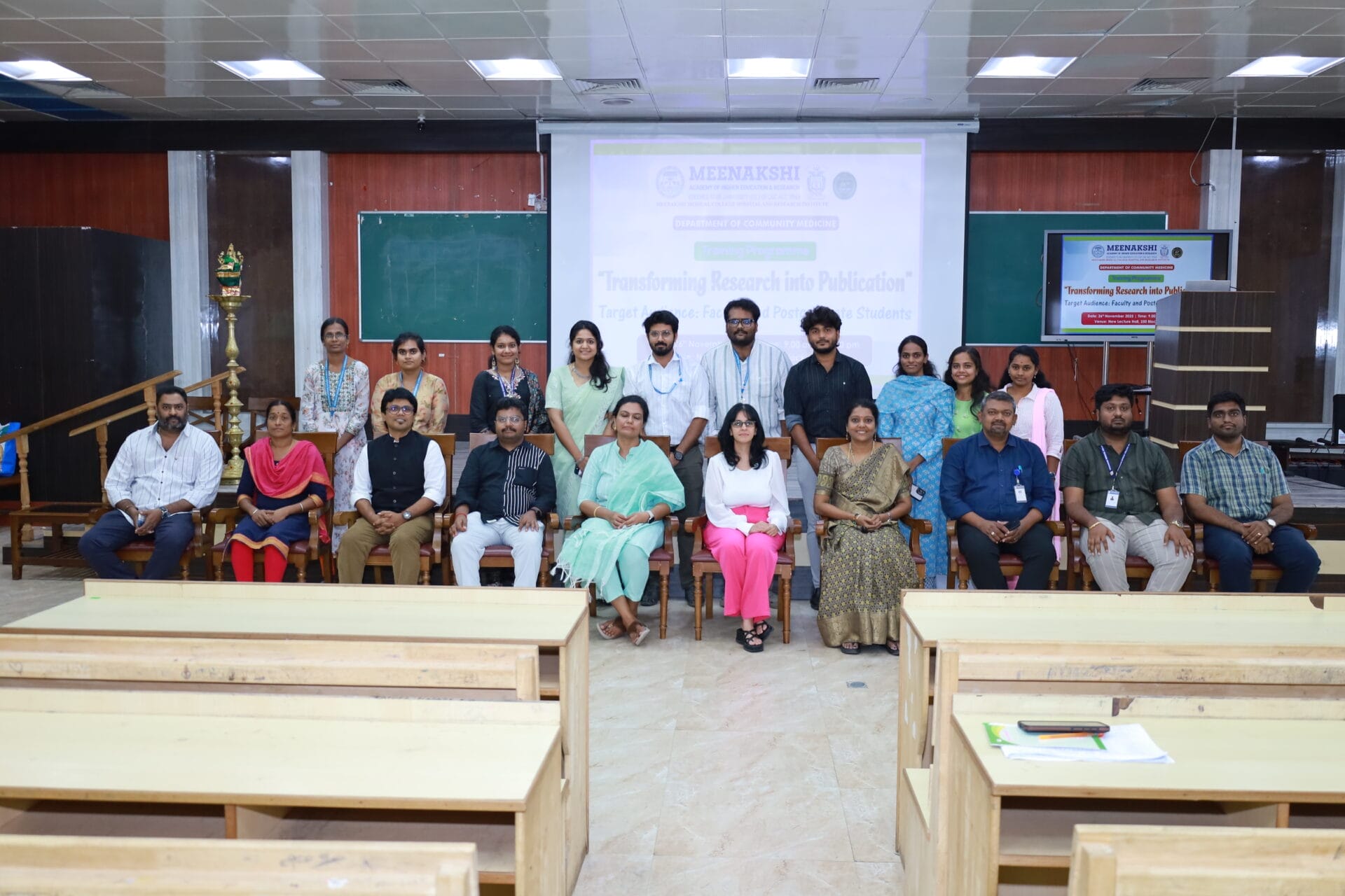 The Department of Community Medicine and the Research and Development Committee of MMCHRI organized an insightful workshop titled “Transforming Research into Publication” on 26 November 2025. Designed to strengthen the research capabilities of postgraduate students, faculty members, and early-career researchers, the workshop focused on equipping participants with the essential skills required to convert quality research into impactful scientific publications. Through engaging sessions, expert guidance, and practical discussions, the program emphasized the fundamentals of study design, data interpretation, manuscript preparation, and ethical scientific writing. The workshop served as a valuable platform for fostering academic growth, encouraging research excellence, and building confidence among participants to contribute effectively to the scientific community.