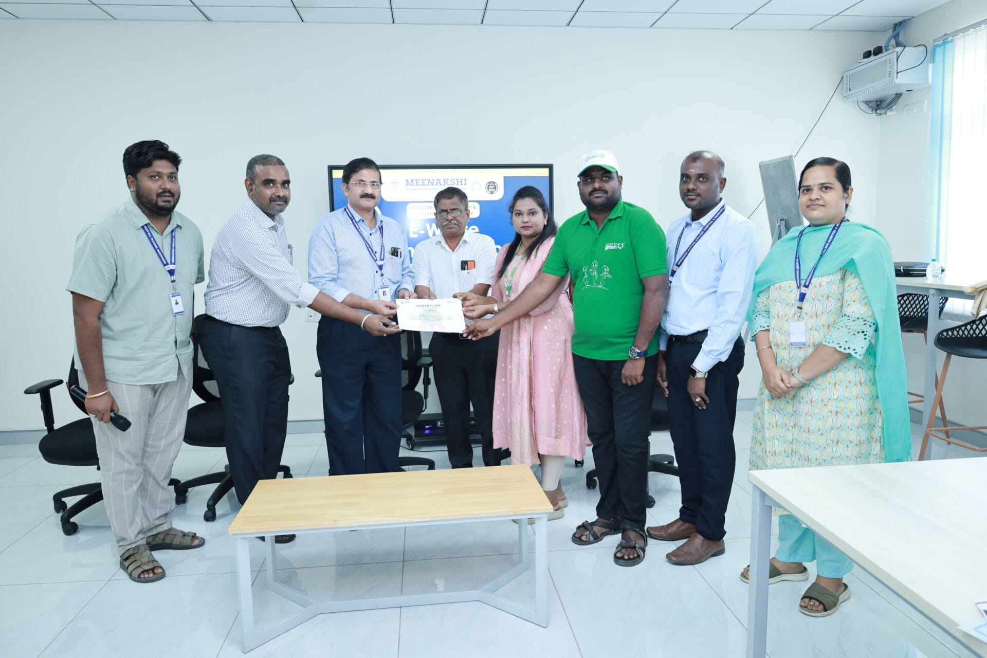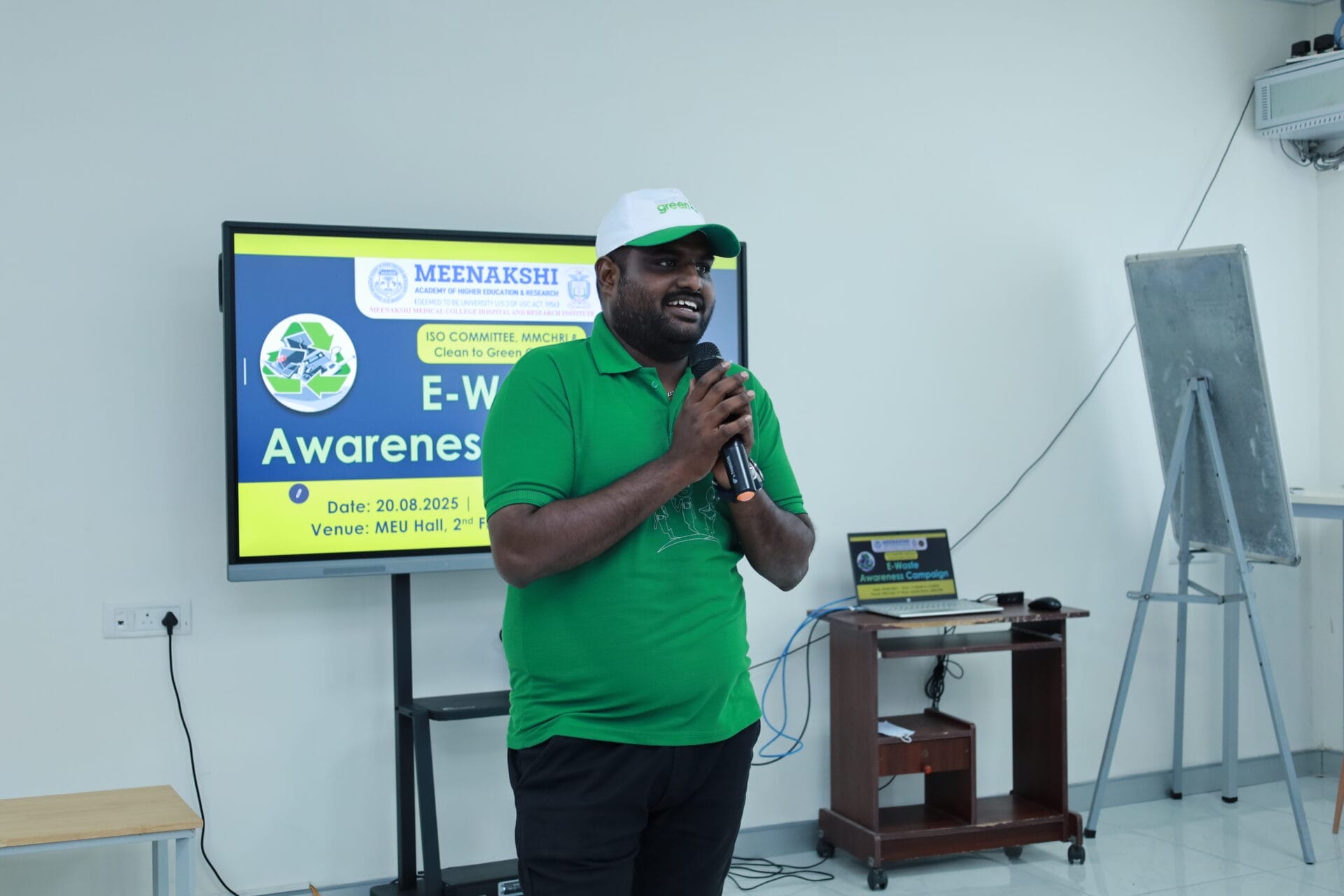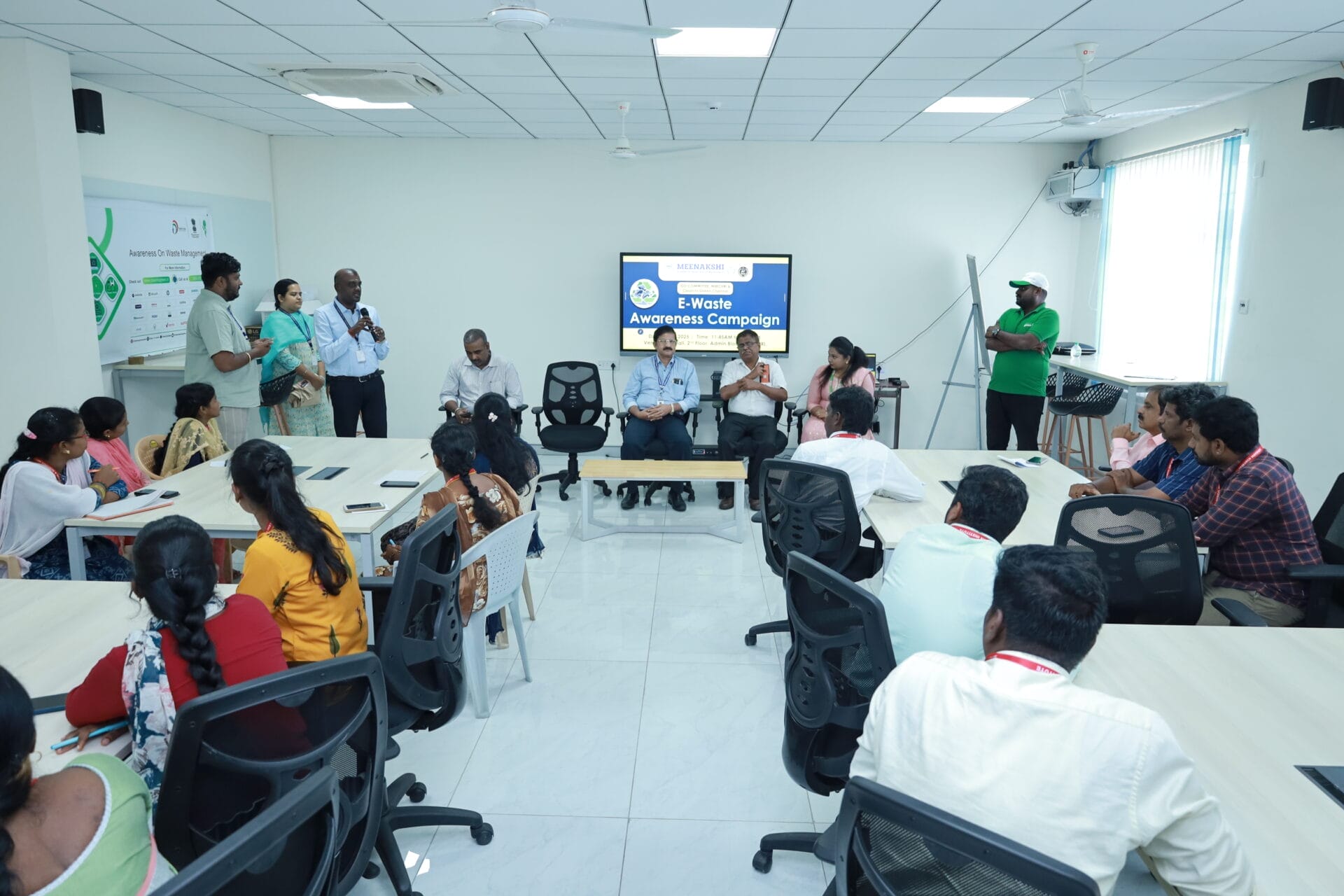 The ISO Team of Meenakshi Medical College and Hospital Research Institute (MMCHRI) successfully organized an E-Waste Awareness Campaign on 20th August 2025 in collaboration with Clean to Green, Chennai. The campaign, conducted exclusively for non-teaching faculty members, aimed to promote safe and responsible e-waste disposal practices.