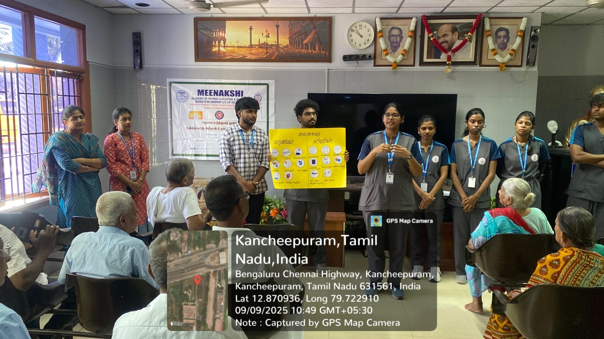 On the occasion of World Alzheimer’s Day 2025, the Department of Community Medicine, Meenakshi Medical College Hospital & Research Institute (MMCHRI) organized a health education session at Kumaran Old Age Home, Enathur.