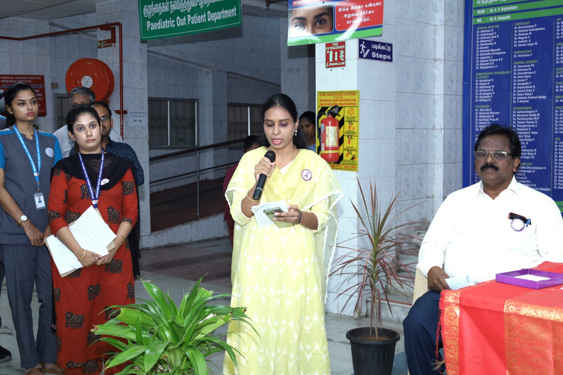 An impactful awareness speech was delivered by Dr. S. Kumaravel, Professor and Head of the Department of Dermatology, shedding light on the causes, myths, and medical management of vitiligo. Contributions from Dr. Radha, RMO, and Dr. Sreenivasan further enriched the discussion with insights into patient care and emotional well-being.The program concluded with a heartfelt vote of thanks by Dr. R. Sivayogana.