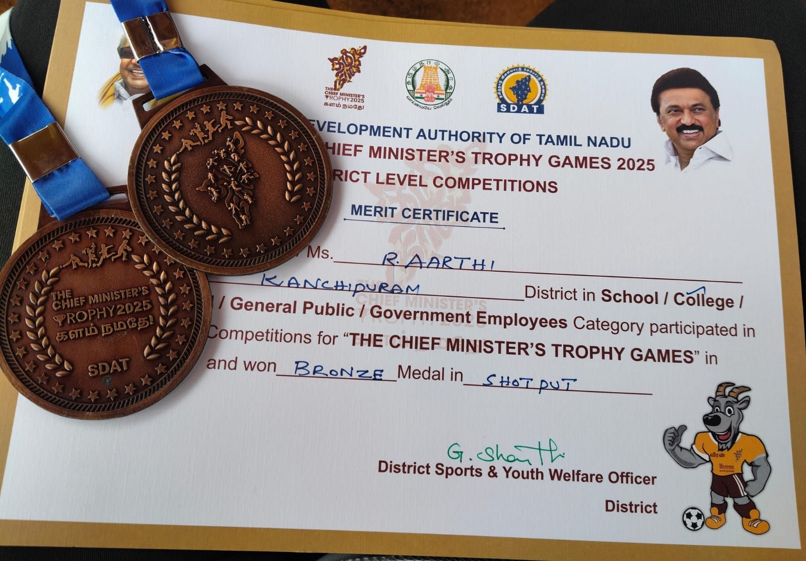 The Chief Minister Trophy 2025, a prestigious annual district-level sports competition organized by the Government of Tamil Nadu, was successfully held at the Sports Development Authority of Tamil Nadu – Perarignar Anna District Sport Stadium, Kanchipuram. The event saw enthusiastic participation from athletes across the district, displaying exceptional sportsmanship and determination.