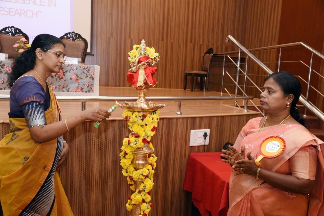 The inauguration ceremony began with the traditional lighting of the Kuthuvilaku, followed by the keynote address delivered by Dr. Fabiola M. Dhanaraj, Principal of Meenakshi College of Nursing, who also unfolded the conference theme. Dr. V. Sureka Varalakshmi, Registrar, MAHER, delivered the special address, while the chief guest, Dr. Malliga, Principal of Indirani College of Nursing, Puducherry, addressed the gathering and emphasized the significance of AI in modern nursing research.