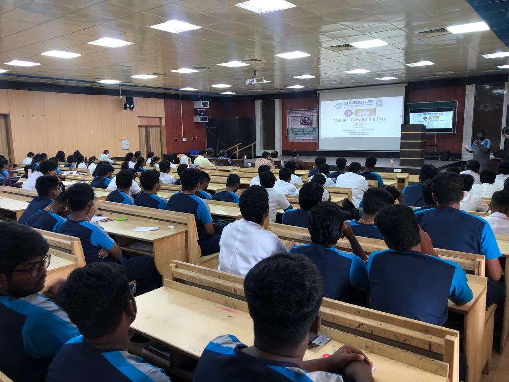 Under the Auspices of Meenakshi Academy of Higher Education and Research, National Deworming Day February 2023, was observed in Meenakshi Medical college Hospital & Research Institute on 14.02.2023. Program was organized by the Department of Community Medicine in collaboration with Unnat Bharat Abhiyan, National Service Scheme.