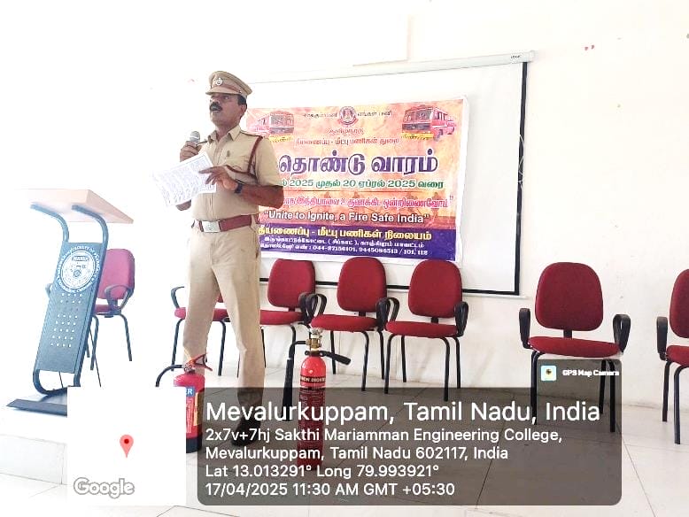 The programme commenced with an informative address by Officer Venkatesh, who emphasized the importance of fire hazard awareness and everyday safety practices. His talk highlighted the critical role that preparedness plays in preventing fire-related incidents and reducing risk. To further engage the audience, informative pamphlets detailing essential fire safety tips and preventive strategies were distributed.