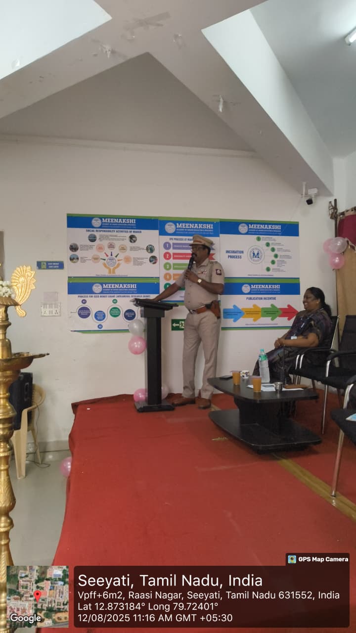 Mrs. S. Elakiya, Library Assistant, spoke on the Importance of Books and Libraries. Mr. E. Prasanna Kumar, Associate Professor, introduced the Chief Guest, followed by Mr. Panchanathan, Librarian, who expressed his admiration for the Chief Guest, Dr. Prof. Vasantha Priya. A token of appreciation was presented to her by Mrs. S. Elakiya.