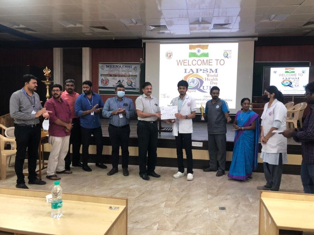 IAPSM World Health Day Quiz 2023 was conducted on 10h April 2023 at Meenakshi Medical College and Research Institute , Kanchipuram, Tamil Nadu. The program was organized under the guidance of Dr. K.Shankar (Professor & HOD) with full participation of all faculties, postgraduates and staff of the Community Medicine Department.”