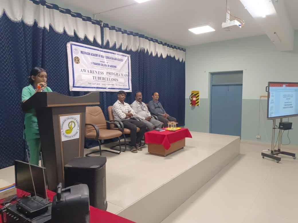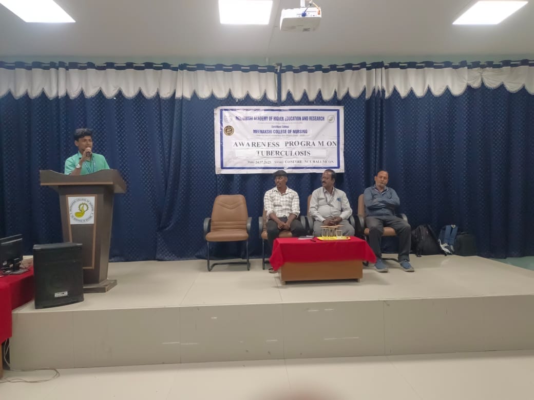 The NSS Unit of Meenakshi College of Nursing (MCON) organized an awareness program on Tuberculosis (TB) and the National Tuberculosis Elimination Program (NTEP) on 24th July 2025 at the Conference Hall, MCON.