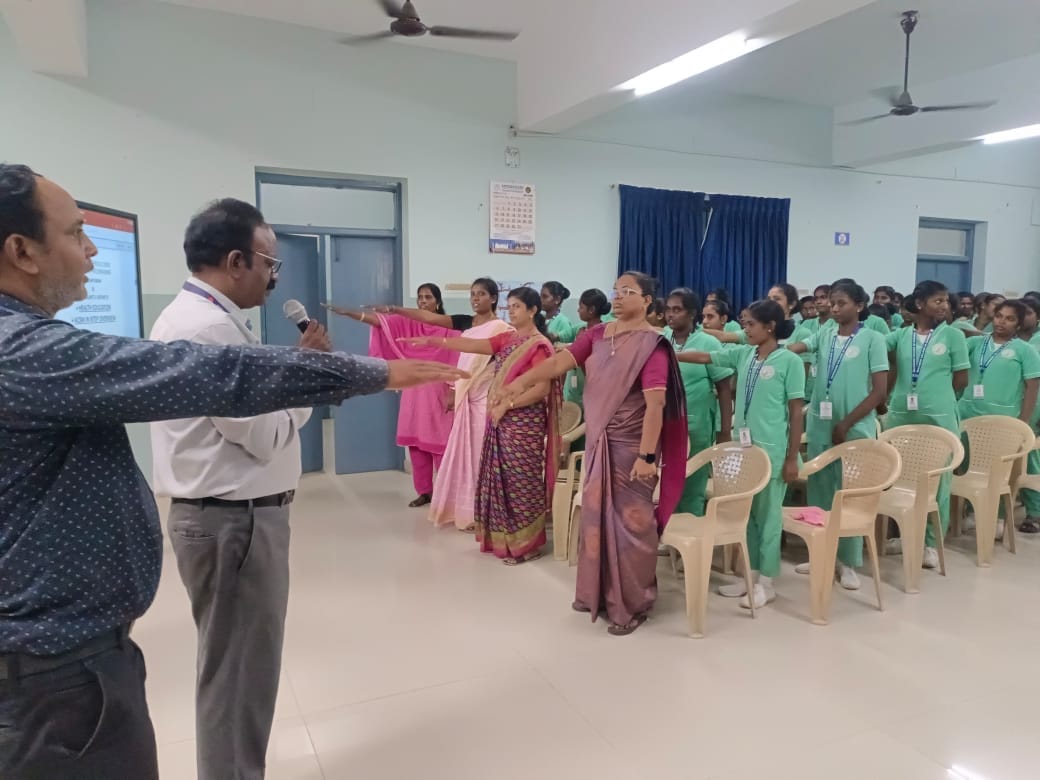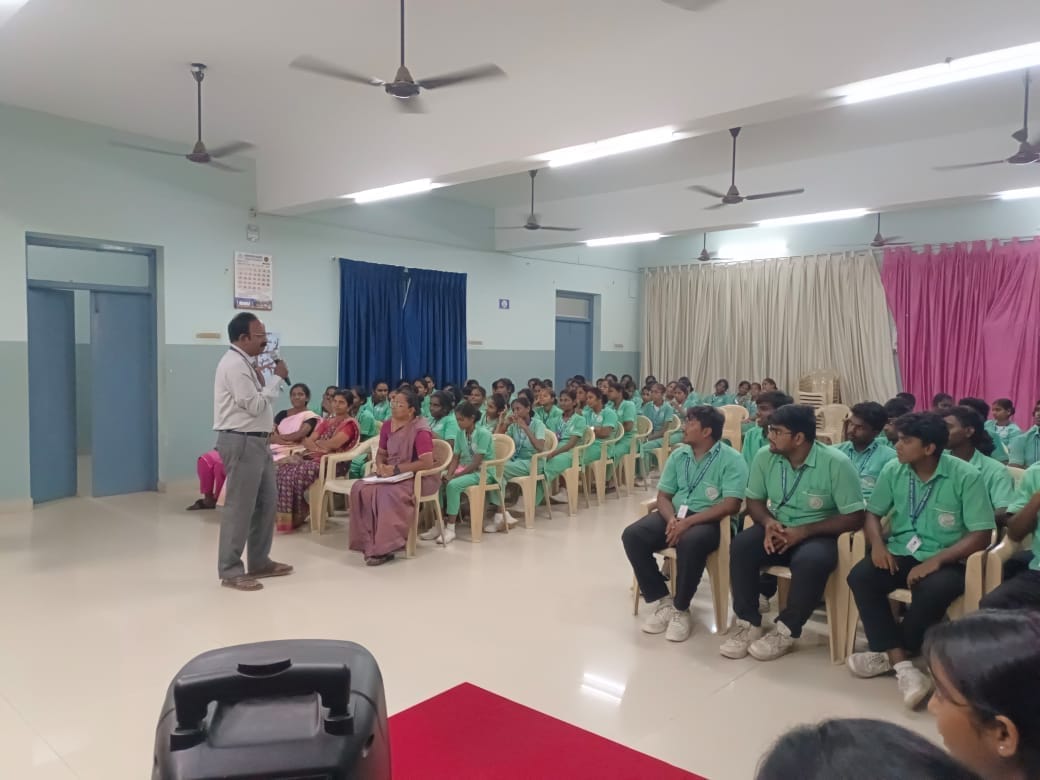 The awareness talk was presented by Mr. Raju Sundar, Health Educator, District TB Centre, Kanchipuram. He discussed in detail the signs, symptoms, treatment protocols, and preventive strategies related to Tuberculosis. He also highlighted the objectives of the National Tuberculosis Elimination Program and the importance of Directly Observed Treatment, Short-course (DOTS) in combating the disease.