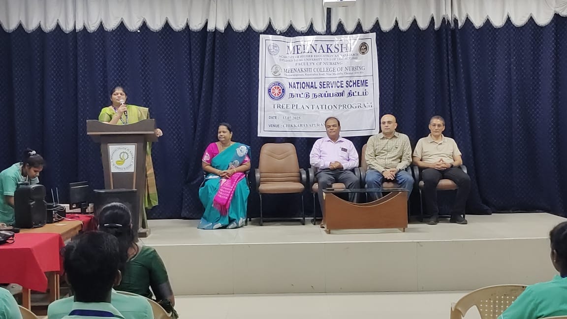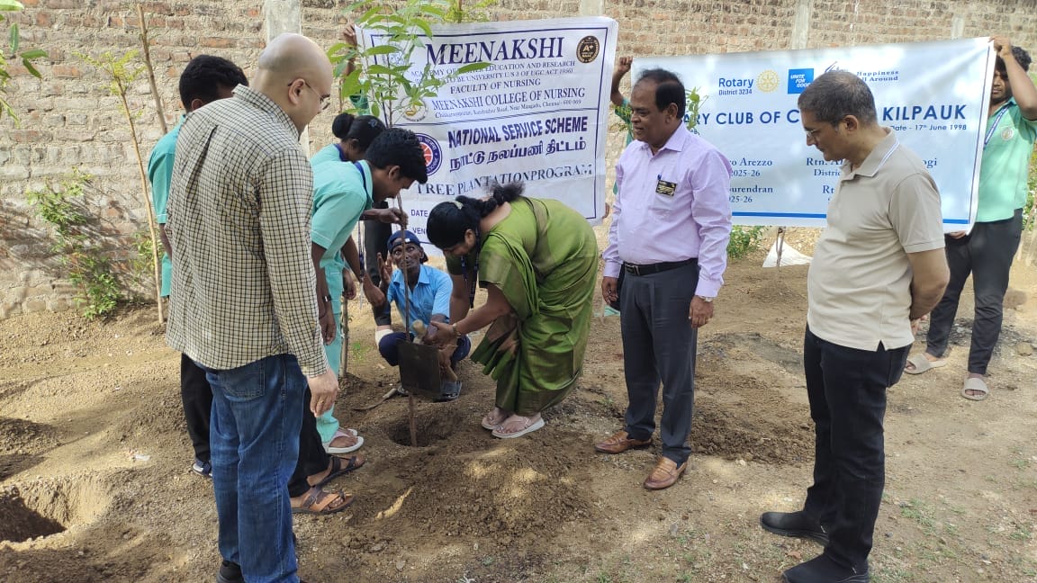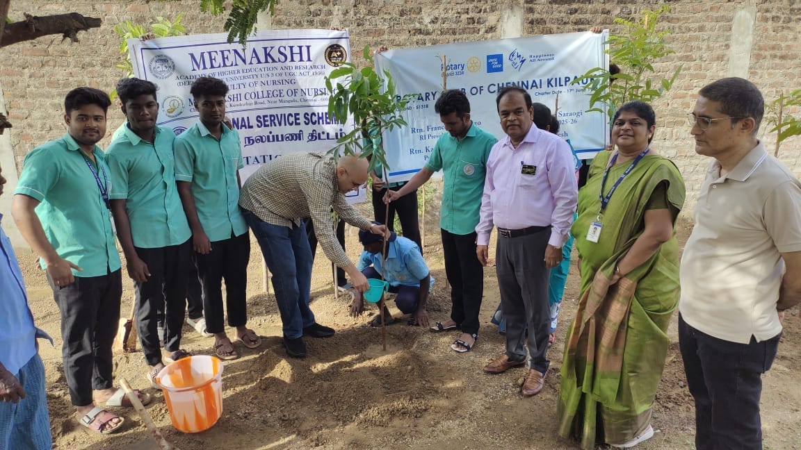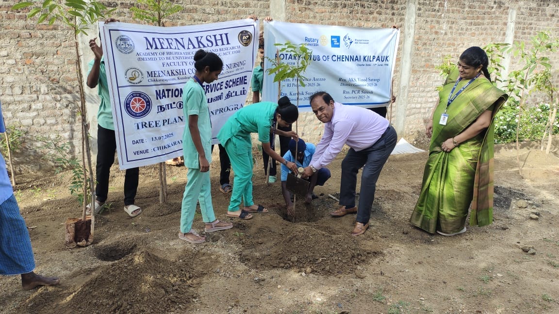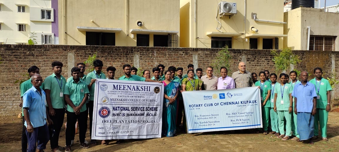 The NSS Unit of Meenakshi College of Nursing, in collaboration with the Rotary Club of Kilpauk, organized a Tree Plantation Program on 12th July 2025 within the college campus, reaffirming their commitment to environmental conservation and sustainability.