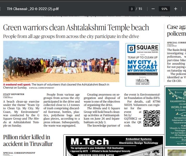 | 9/6/2024 | World Environment Day-Beach Cleaning Activity | NSS, Meenakshi College of Nursing | |