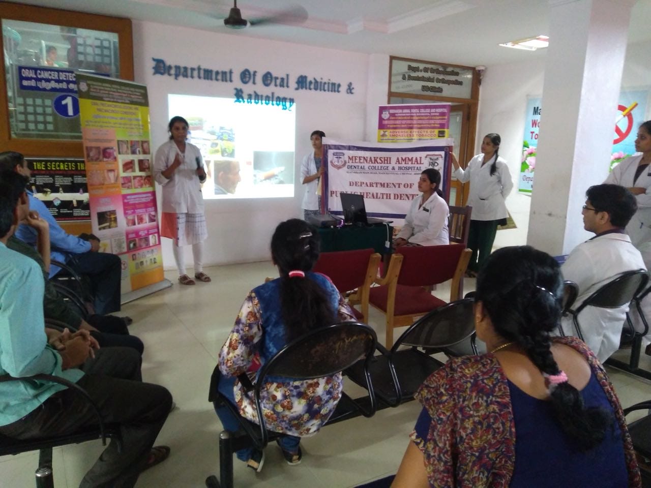| 31-05-2024 | Awareness program on World No tobacco Day | Meenakshi Ammal Dental college and Hospital | |