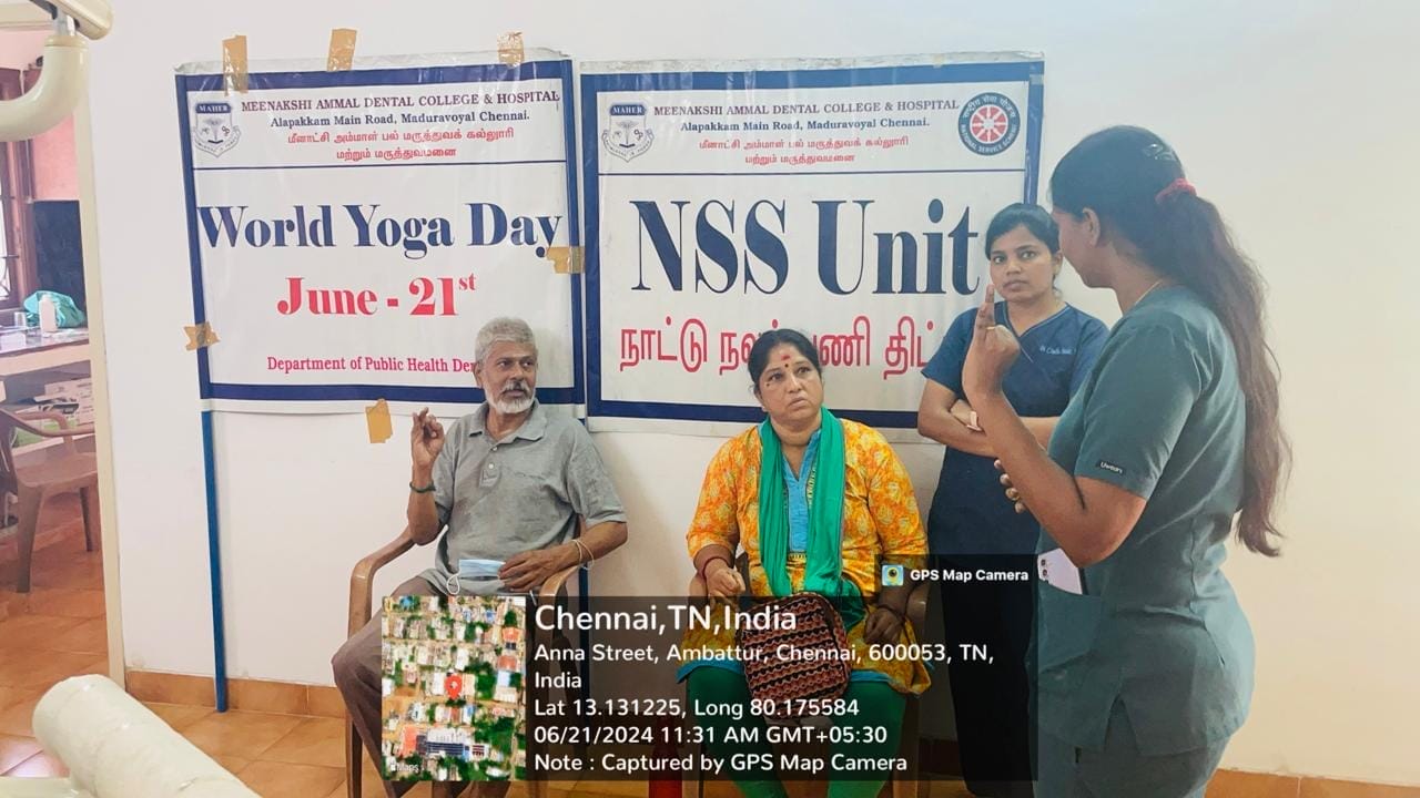 | 21-06-2024 | Awareness program on International Yoga day | Meenakshi Ammal Dental college and Hospital | |