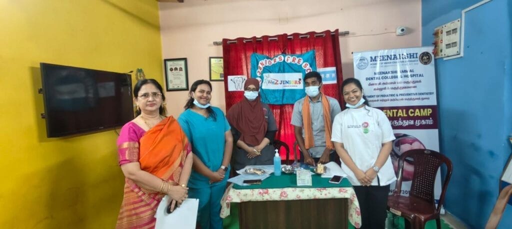 An oral health screening and awareness camp was organized by the Department of Pedodontics , Meenakshi Ammal Dental College at Whiz Juniors Preschool, Teynampet comprising 42 children. Oral health screening was done and treatment plan was elicited and explained individually for each child. Oral hygiene instructions were reinforced to the children.