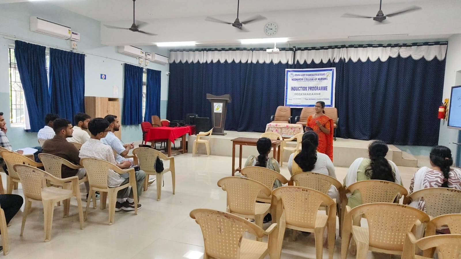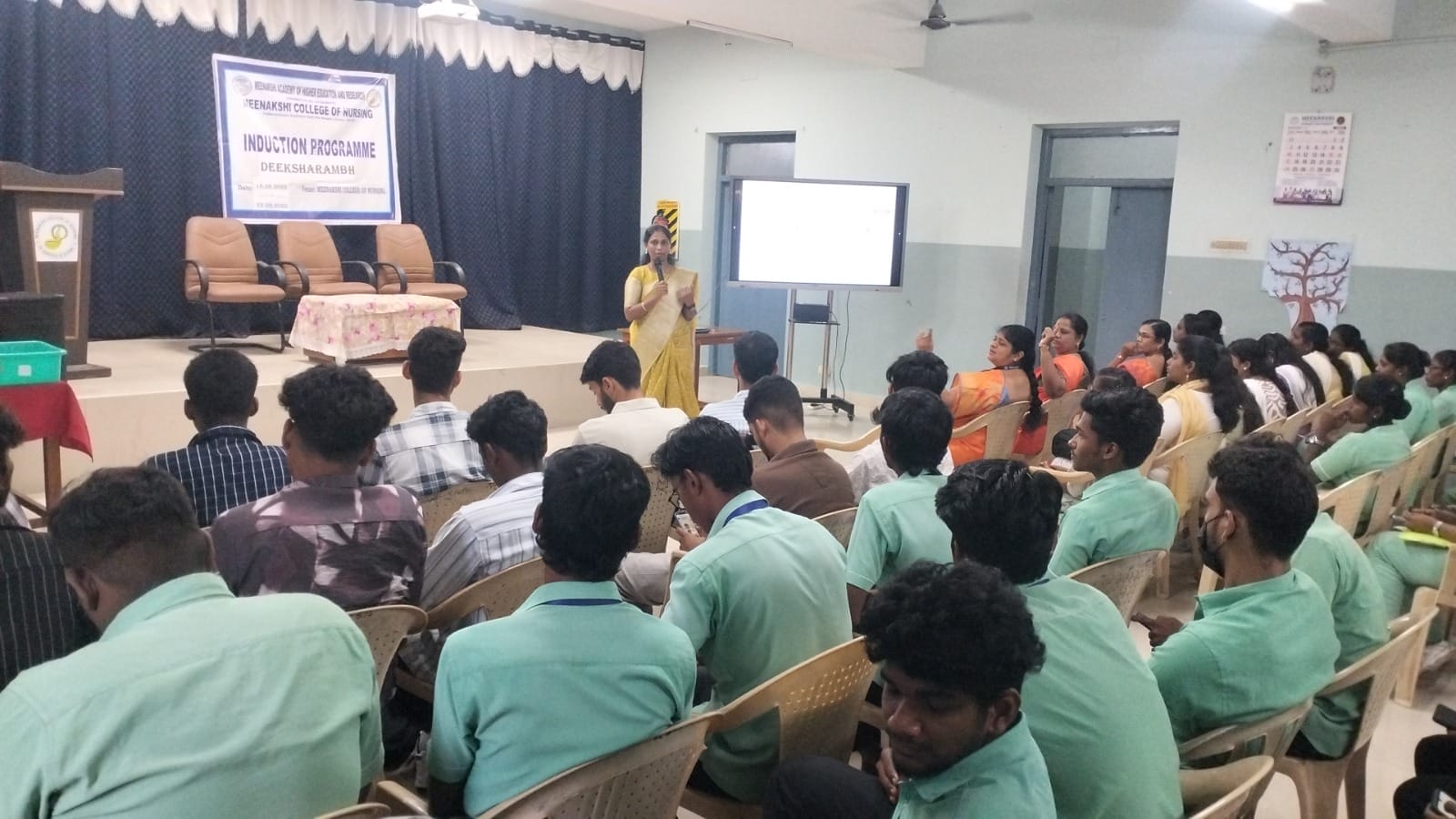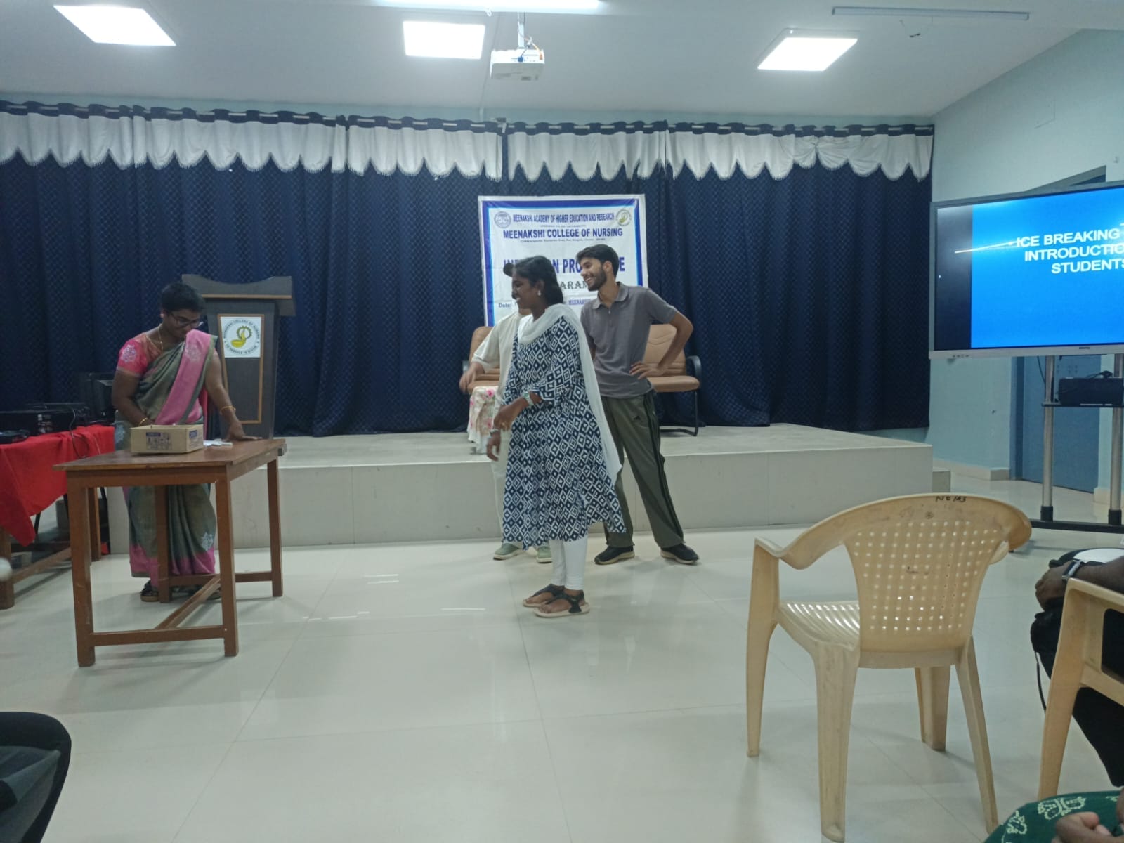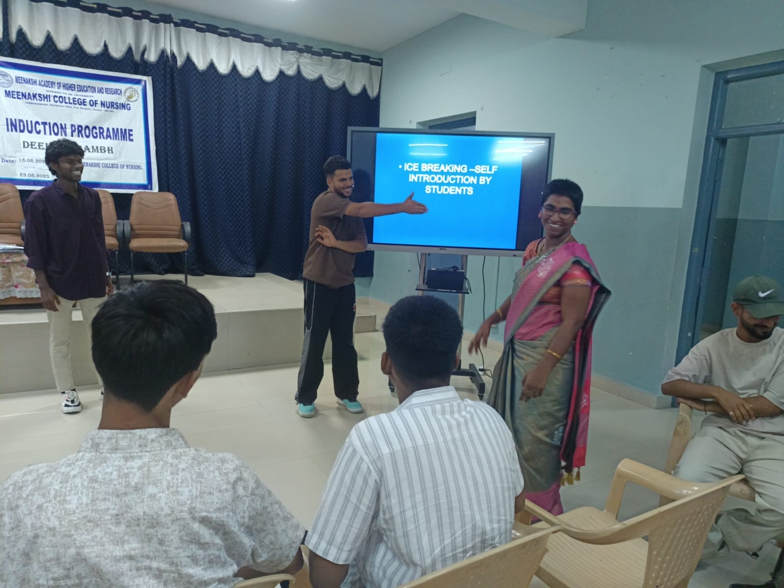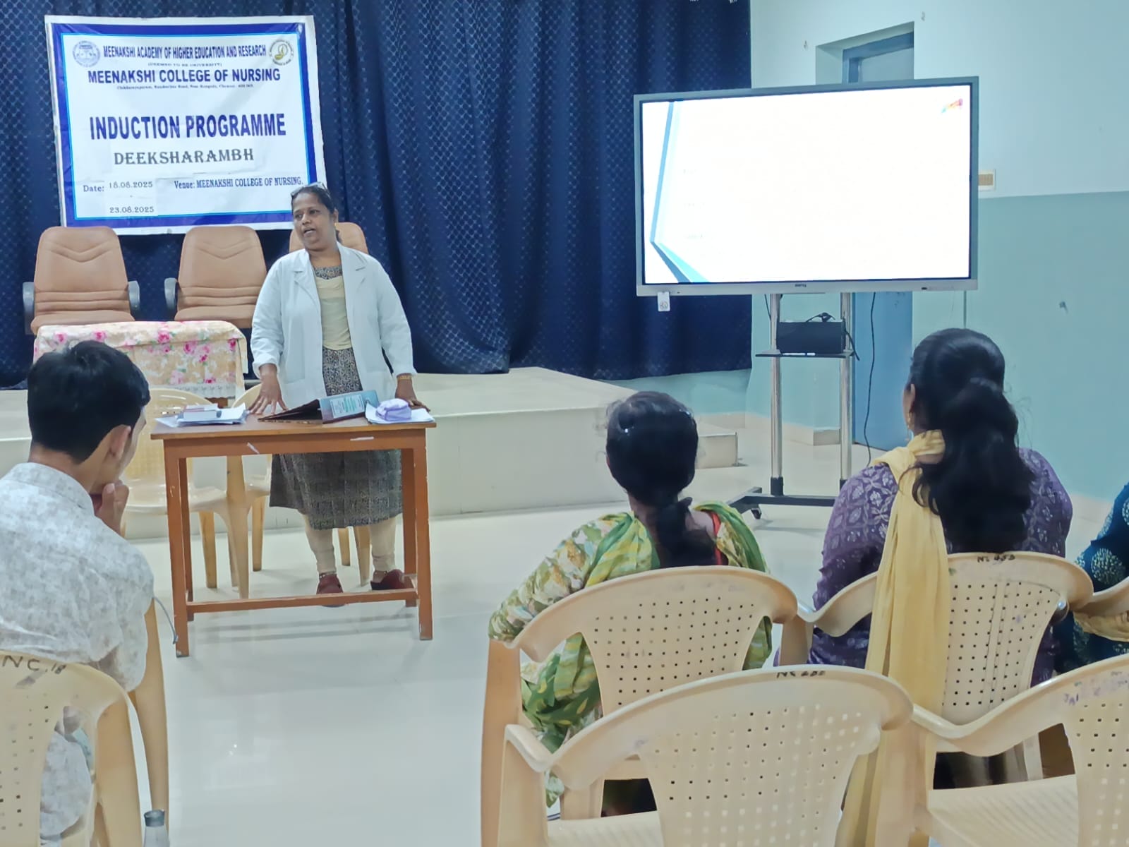 The Orientation Programme for the newly admitted B.Sc. (N) I Year students of Meenakshi College of Nursing (MCON) was successfully conducted from 18th to 23rd August 2025. The programme was designed to familiarize students with the college environment, academic departments, professional expectations in nursing, and hostel life, while also instilling values of discipline, responsibility, and self-awareness.