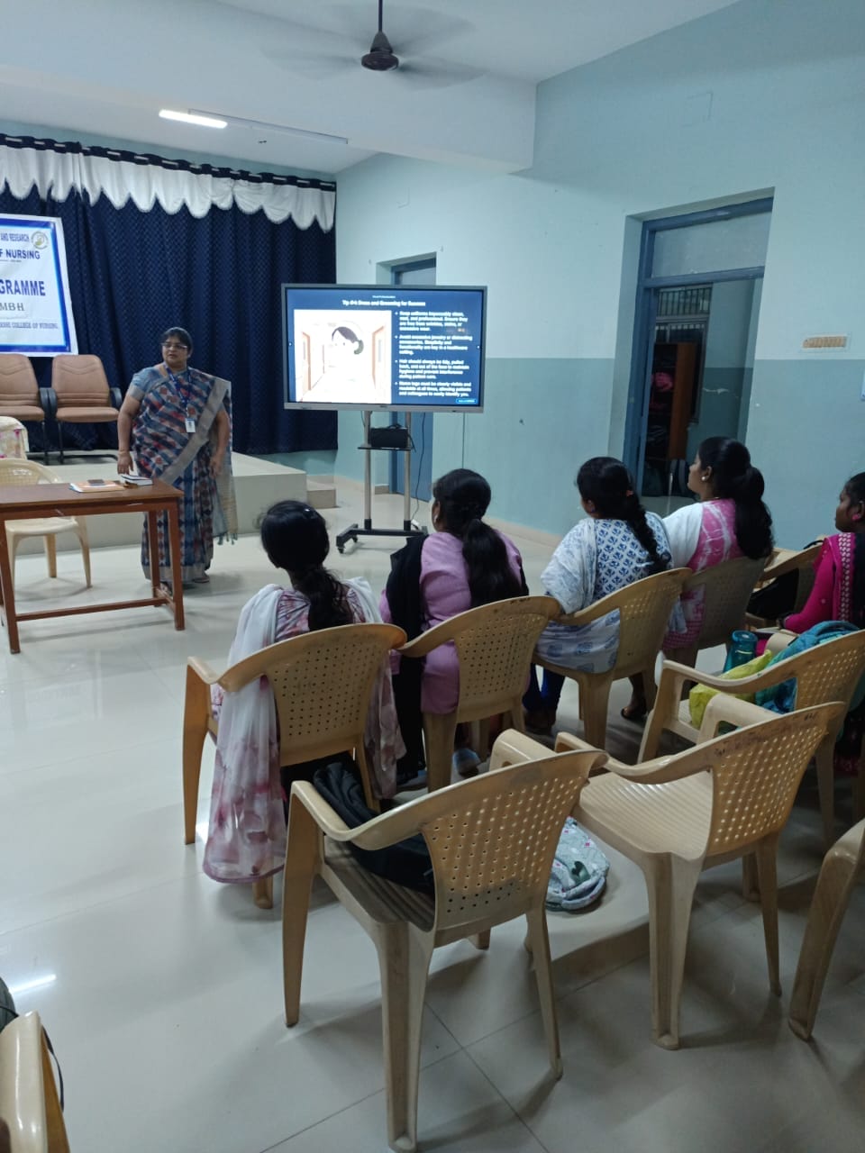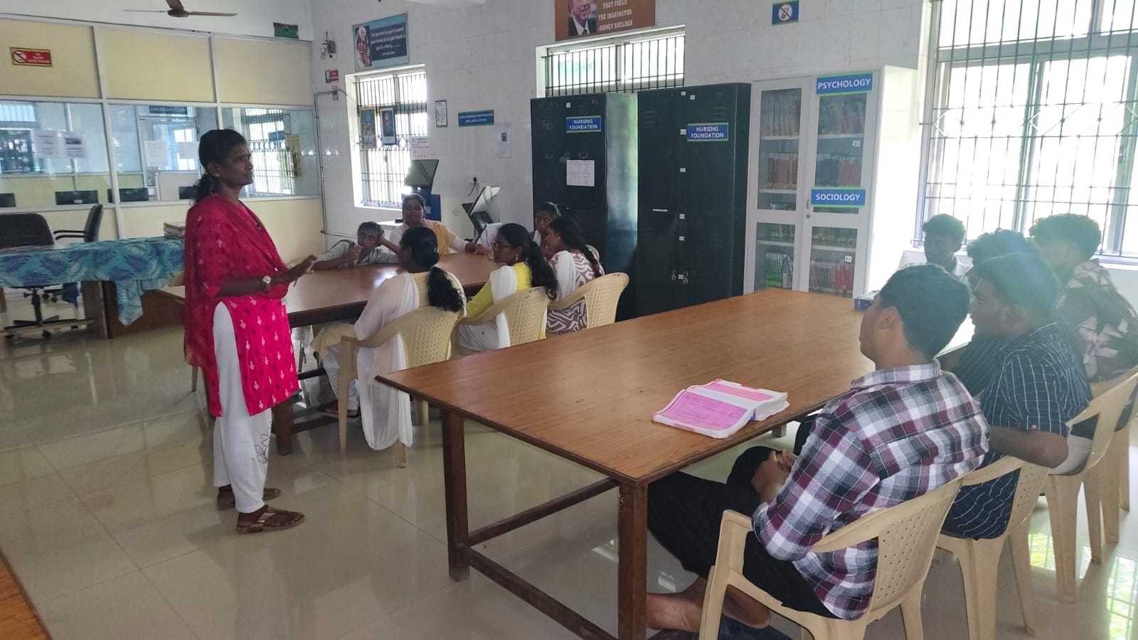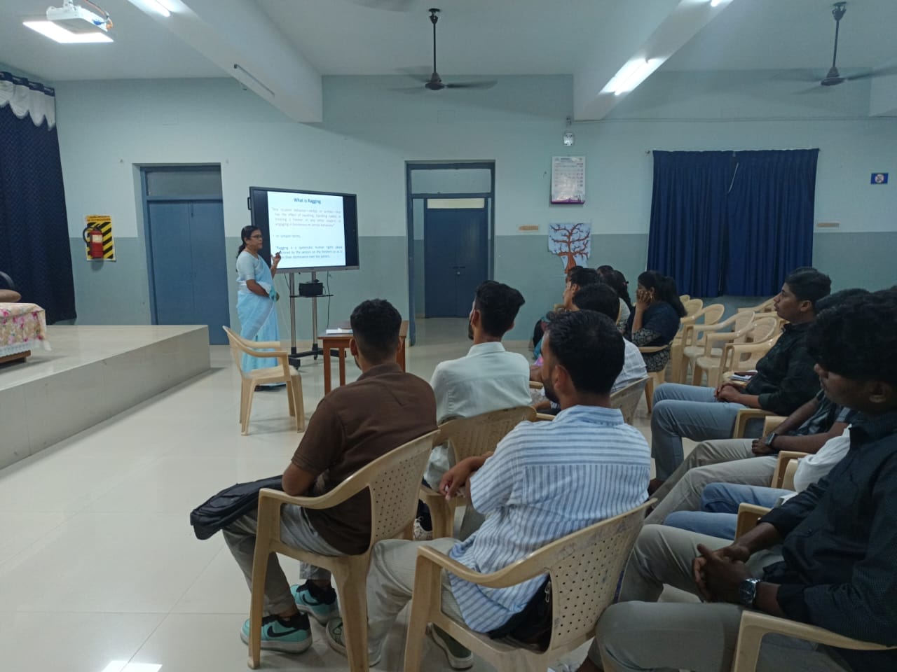 Across the week, students attended a series of insightful sessions, including awareness on the Anti-Ragging Policy by Dr. Kavitha M, the Mentor-Mentee System by Dr. Anitha J, Code of Conduct by Mrs. Jebin Sherly, Associate Professor, and Professional Etiquettes in Nursing by Dr. Fabiola M. Dhanaraj, Principal. Health and safety awareness was delivered by Mrs. Jothilakshmi, Inspector of Police, Mangadu. Creative activities such as an essay on self and family, a painting competition on “Nature,” and mentoring on human values encouraged reflection and expression among students.