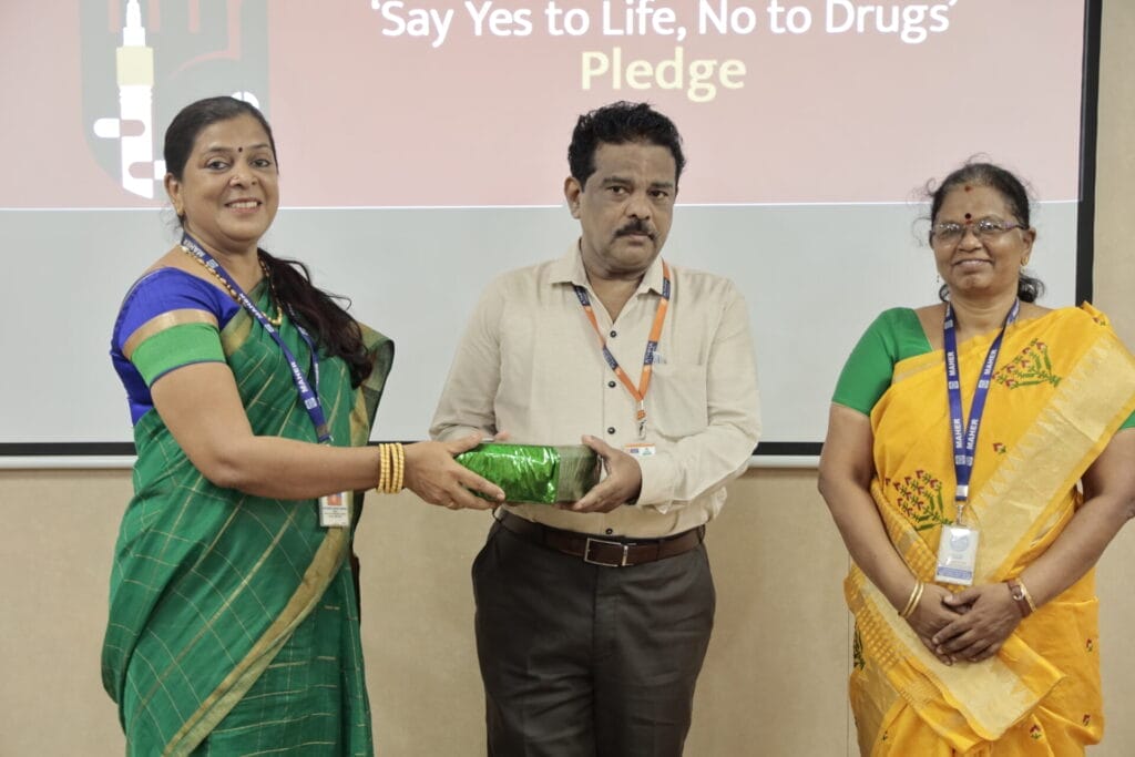 On June 26, 2024, Faculty of Humanities and Science, MAHER observed the International Day Against Drug Abuse and Illicit Trafficking with the theme “People First: Stop Stigma and Discrimination, Strengthen Prevention.” Dr. Shanthi, Principal of FHS, welcomed attendees, emphasizing the day’s significance. Dr. Pushpa Nagini Sripada, Dean of FHS, highlighted the role of education and awareness in combating drug abuse. The Dean of Students led a pledge against drug abuse, reinforcing community commitment to a drug-free environment.