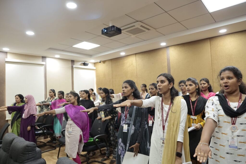 Students from the English Literacy Club, including Logeshwari S., Pragadheeshwari G.V., Aiswarya, and Hemalatha, shared speeches and poems on the importance of peer support and awareness in preventing drug abuse, reflecting their hope for a future free from addiction. Ms Roopa, Secretary of English Literary club moderated the session.