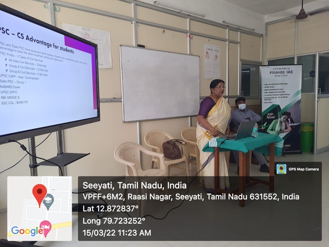 | 2021-2022 | Career Guidance Program for Undergraduates and CRRI’s on ‘UPSC Walkthrough’ with VERANDA Learning Solutions. | 161 |