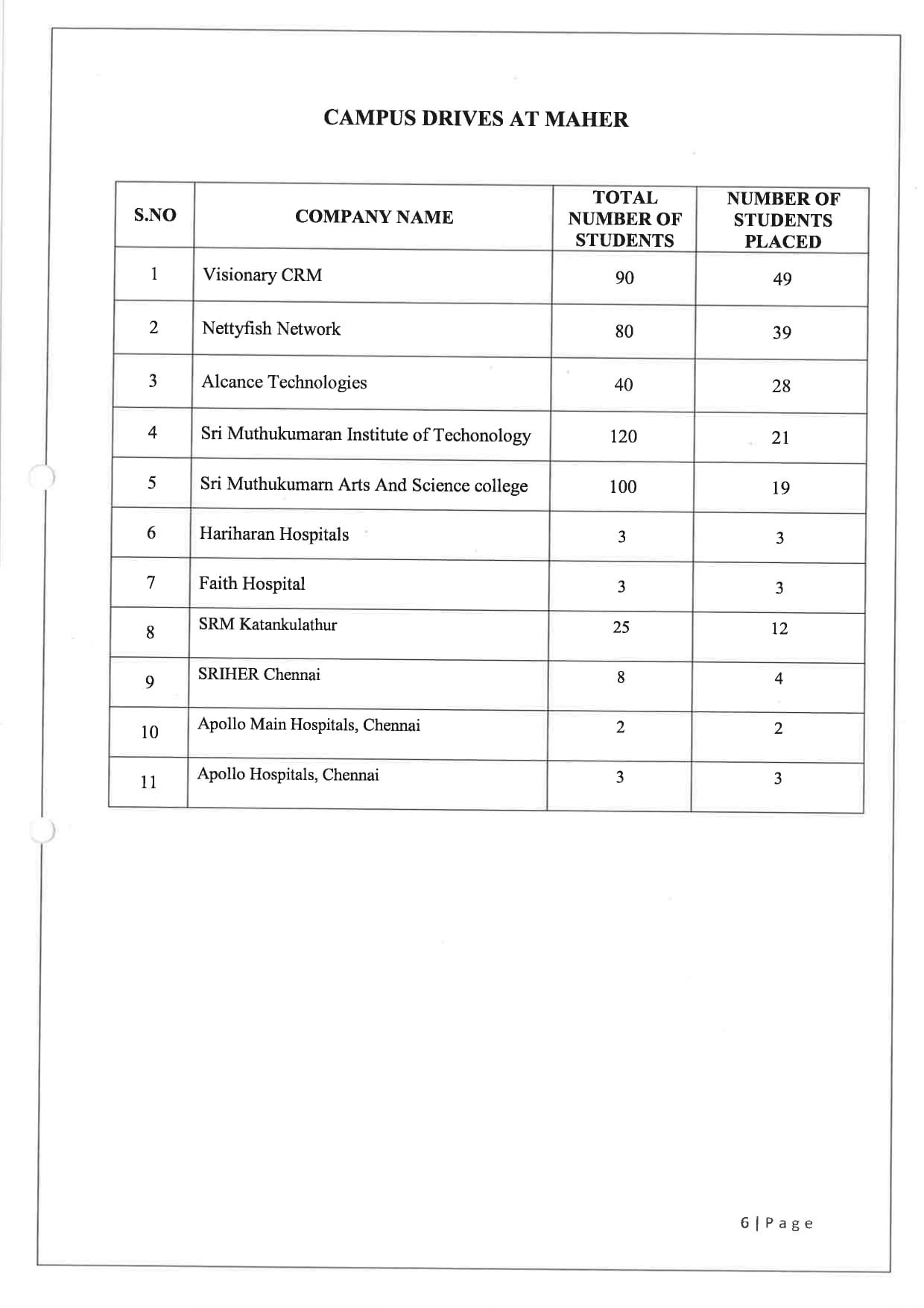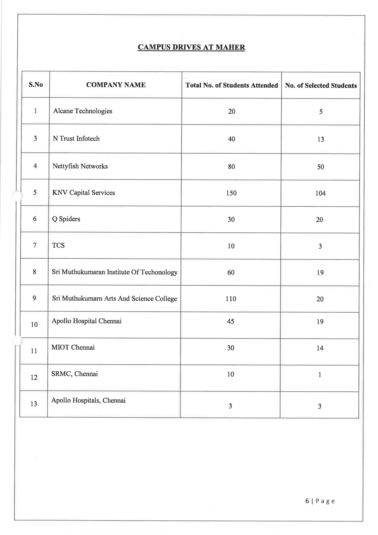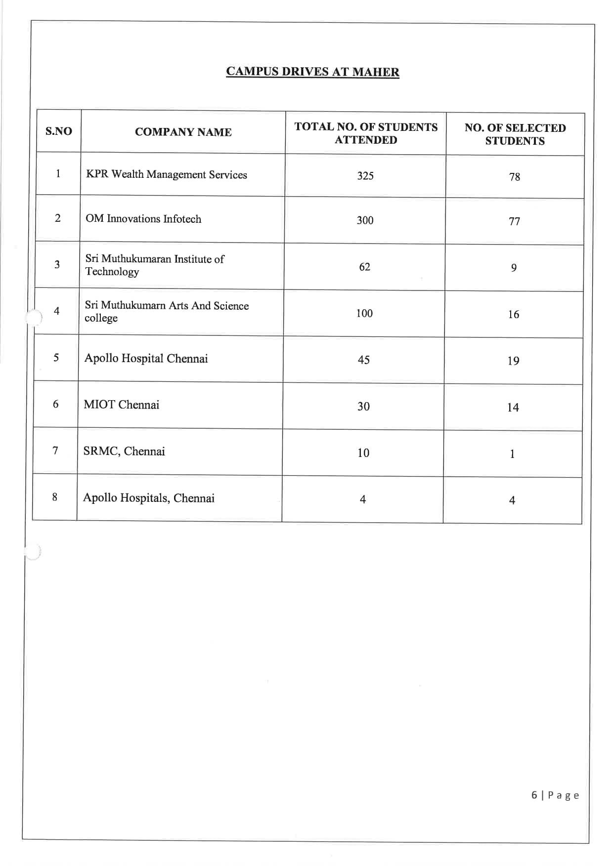 | SI.NO | COLLEGE | COMPANY | DATE | STUDENT ATTENDED | STUDENT SELECTED |