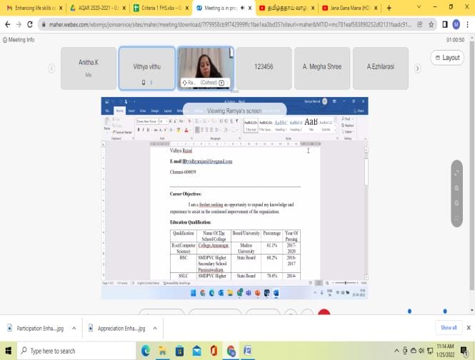 | 22 | Ms. Mahalakshmi | UG Student, Meenakshi College of Arts and Science | |