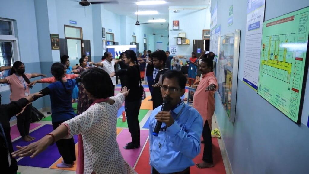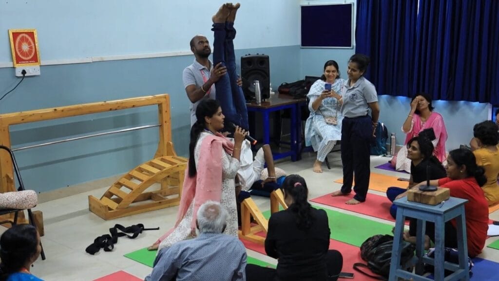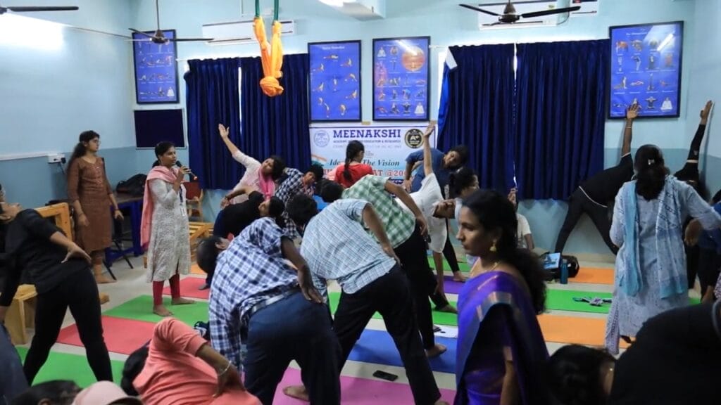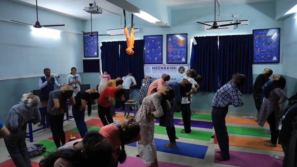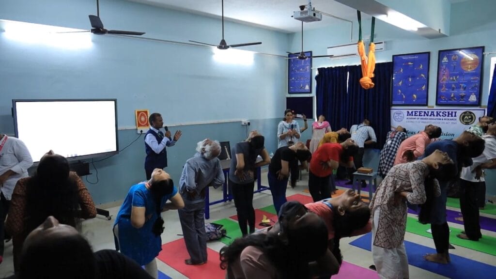 The Faculty of Yoga Science and Therapy conducted the Professional Development Program (Hybrid Mode) – Hands-on Training & Workshop on “Tune Your Spine without Strain Through Yogasana” on 25.03.2024 at Meditation Hall, FYST, MAHER. A total of 109 registrations were received of which 66 through online and 43 through offline. The workshop was well received by the faculties, students, and scholars. Prof. Dr. V. Subbulakshmi, the principal of FYST, welcomed the dignitaries and participants. The Resource person, Dr. S. Lakshmi Kandhan, Assistant Professor, Department of Yoga Therapy, Moraji Desai National Institute of Yoga, Ministry of Ayush, New Delhi started the session “Role of Yogasana on Spinal Health” with Anatomy of the Spine, a detailed explanation about the Physiology of the spine continued the afternoon session with Yogic management of Musculoskeletal Disorders. The following session was taken by Dr. V. Subbulakshmi, Principal, FYST, MAHER, on “Props and their applications for beginner-level Yogasana practitioners,” followed by a practical demonstration. Mr. A. Anndurai, Assistant Professor, FYST, MAHER, took a session on “Step-by-step guidance for advanced yoga asana practice,” which inspired the students and faculties to learn more about yogasana and its benefits. The workshop ended with a question-and-answer session.