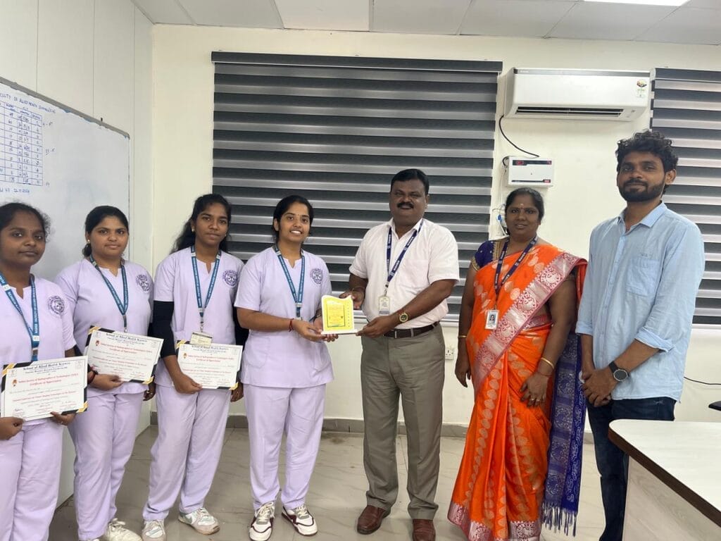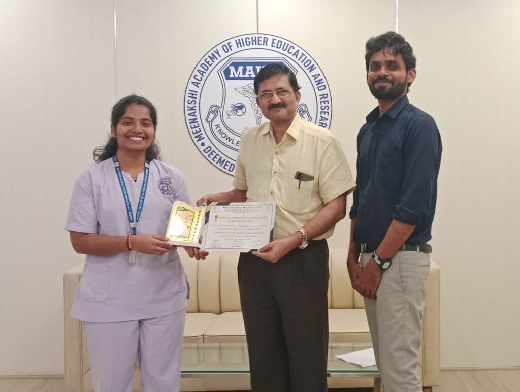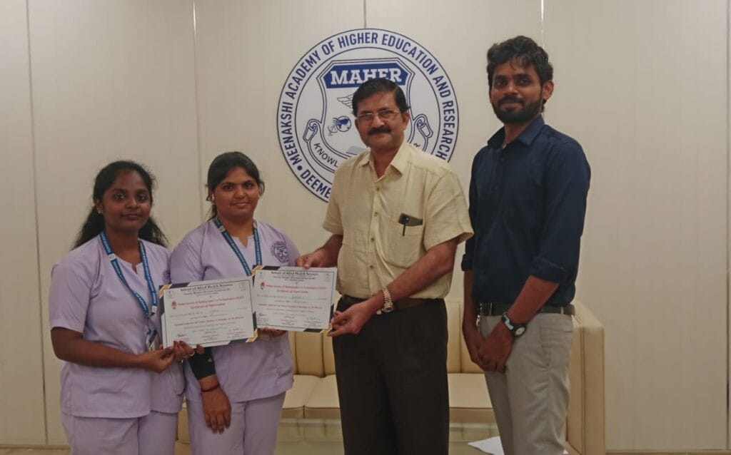 Final-year B.Sc Radiology Imaging Technology Students (FAHS), MAHER participated in the Radiology National Conference organized by the School of Allied Health Sciences, Vinayaka Mission, Salem, on 7th December 2024. The students displayed exceptional skills in paper and e-poster presentations, with Ms. Rajeswari achieving 2nd prize in the paper presentation. A proud and inspiring achievement for the team.