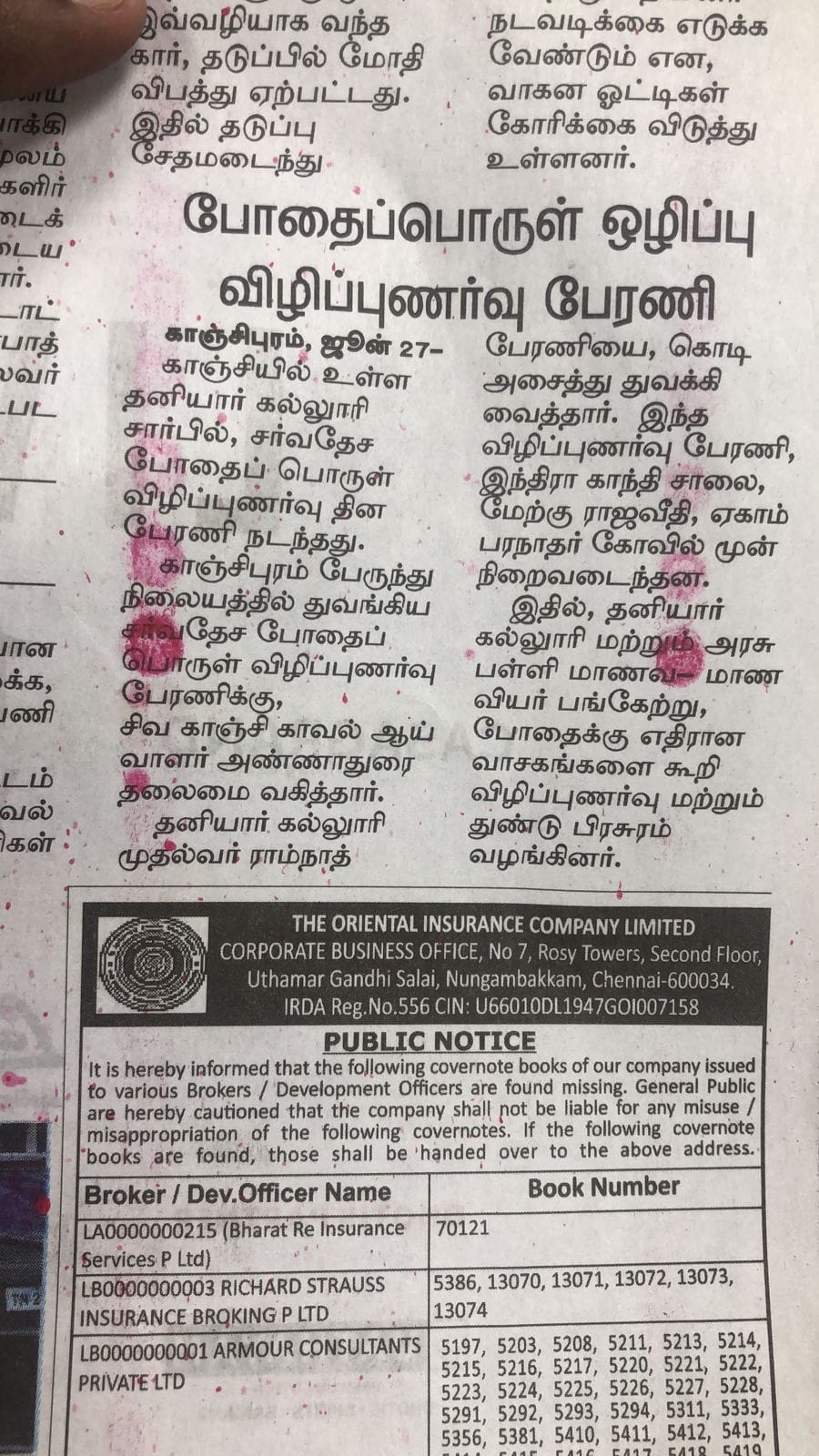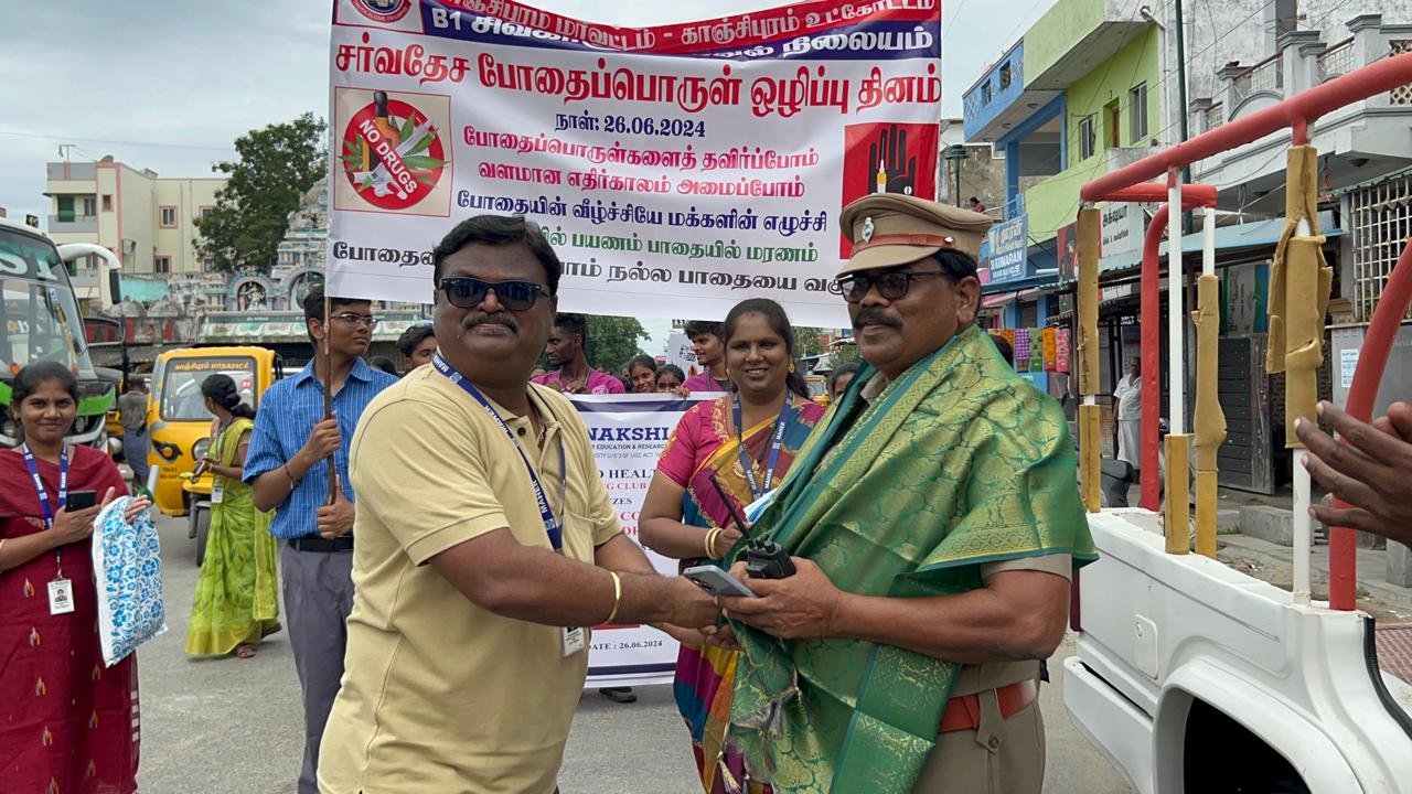 The participants marched through the streets, carrying banners and placards to raise awareness about the dangers of drug abuse and illicit trafficking. The rally concluded at Egambaranathar Temple, where participants gathered to reinforce their commitment to combating these societal issues. It was broadcasted on Makkal TV news and featured in prominent newspapers such as Dinamalar and Kadhir Osai.