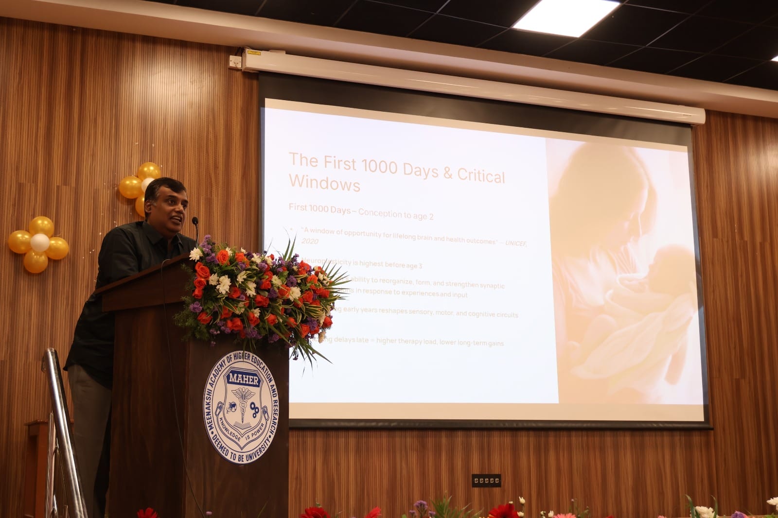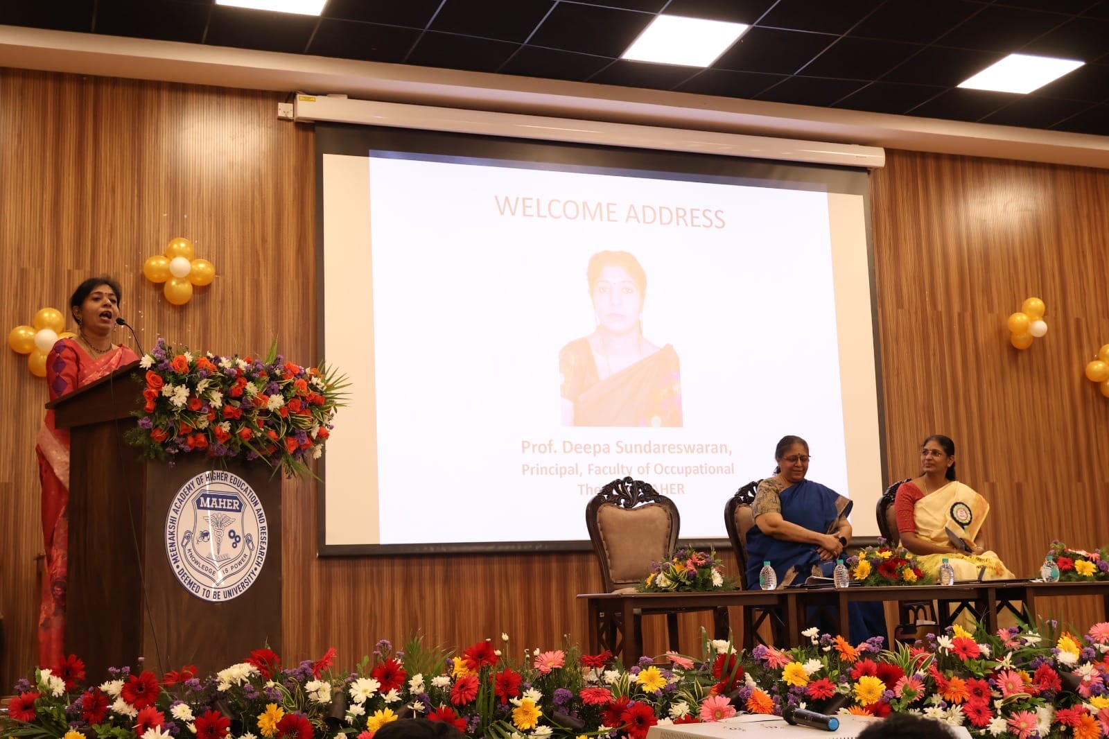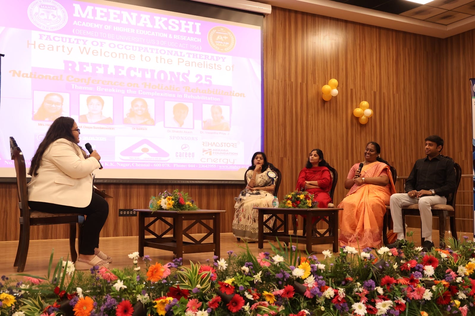 A panel discussion moderated by Mrs. Hasti Divecha (FOT, MAHER) explored the conference theme with insights from Prof. Deepa Sundareswaran, Mrs. Subha R. (Aadhuraa Special School), Dr. Vasantha Priya J. (Arulmigu Meenakshi College of Nursing), and Dr. Shakthi Akash (Meenakshi Ammal Dental College).