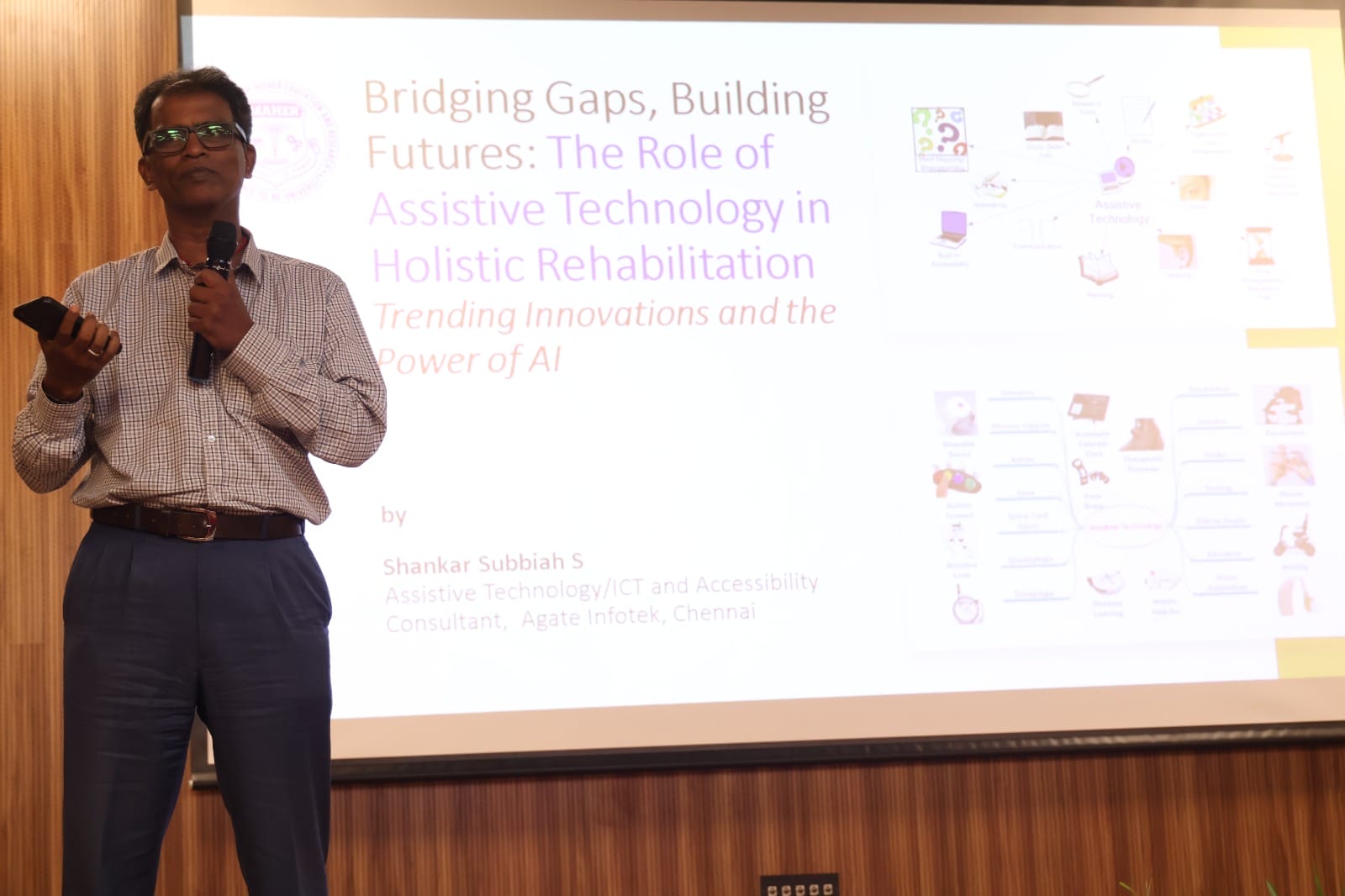 The afternoon sessions included policy and practice talks by Mr. Rajat Srivastava (National Centre for Good Governance), Mrs. Sarah Daniel (SCARF, Chennai) on mental health, Mr. Shankar Subbiah (Agate Infotek) on assistive technologies, and Dr. Sebestina Anita D’souza (Manipal College of Health Professions, MAHE) on geriatric rehabilitation.
