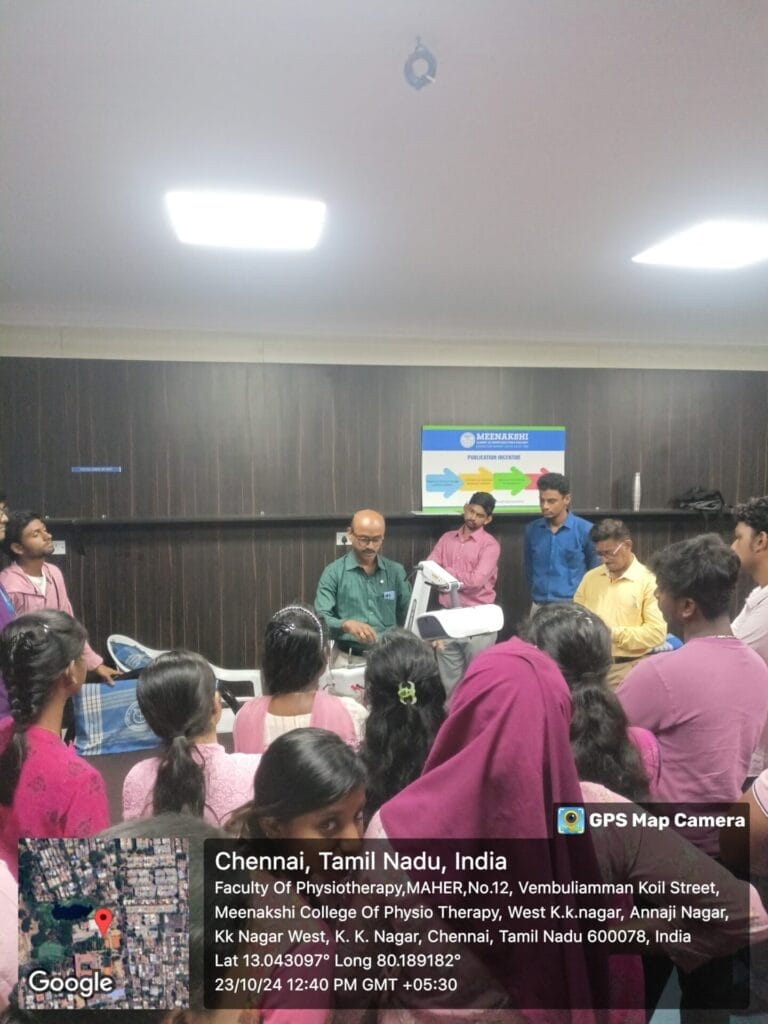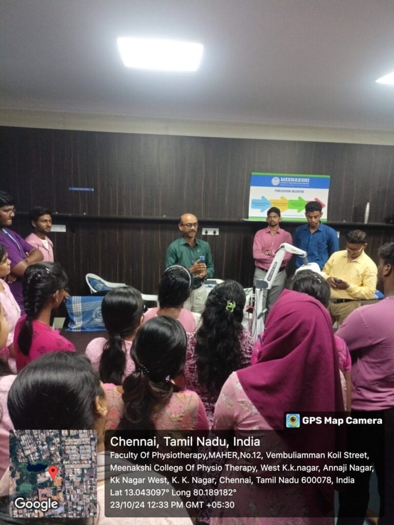 Maintenance Committee, Faculty of Physiotherapy , MAHER, organized a program on Regular Equipment checks & services on 23.10.24 ,Resource Person Mr. Sankar from TechnoMed Electronics enlightened the session with his valuable inputs sharing the importance of prevention of Hazards & reduction of risk of Centralisation of Power.