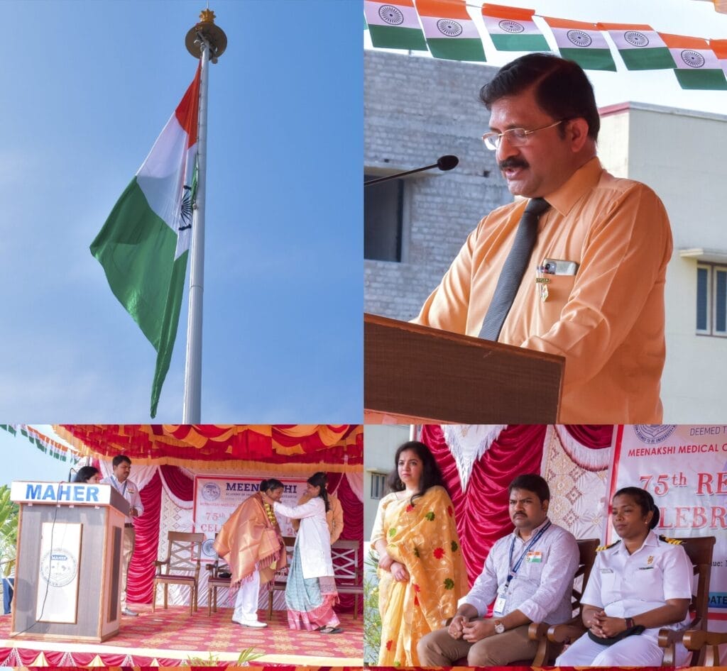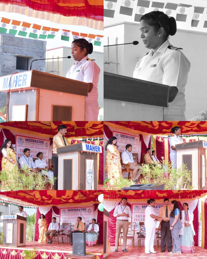 “The Republic Day 2024 Celebration in Meenakshi Medical College Hospital and Research Institute with Chief Guest – Commander Marianne Mathews, INS Rajali, Arakkonam. “