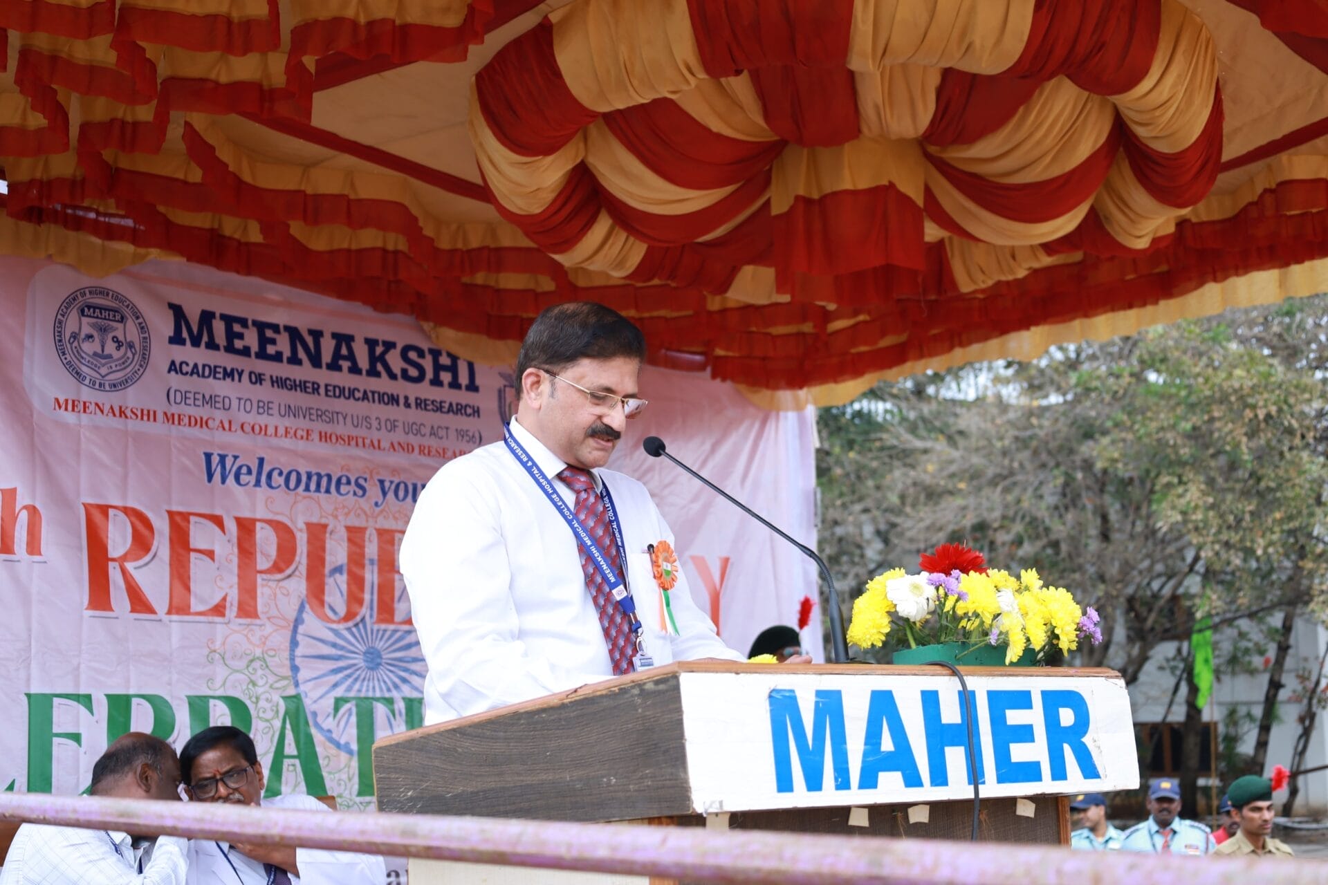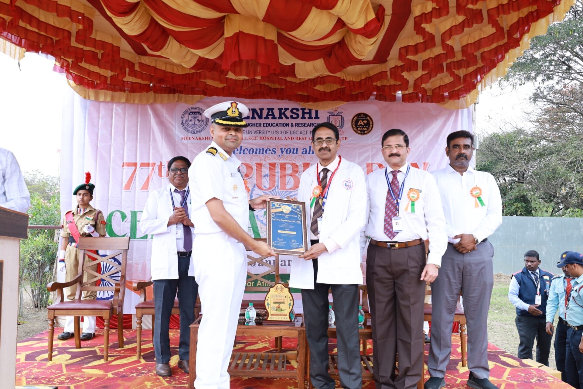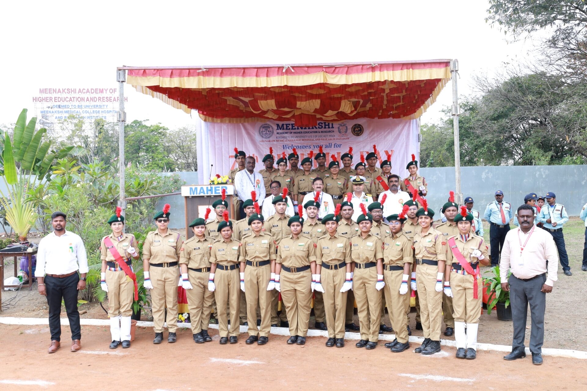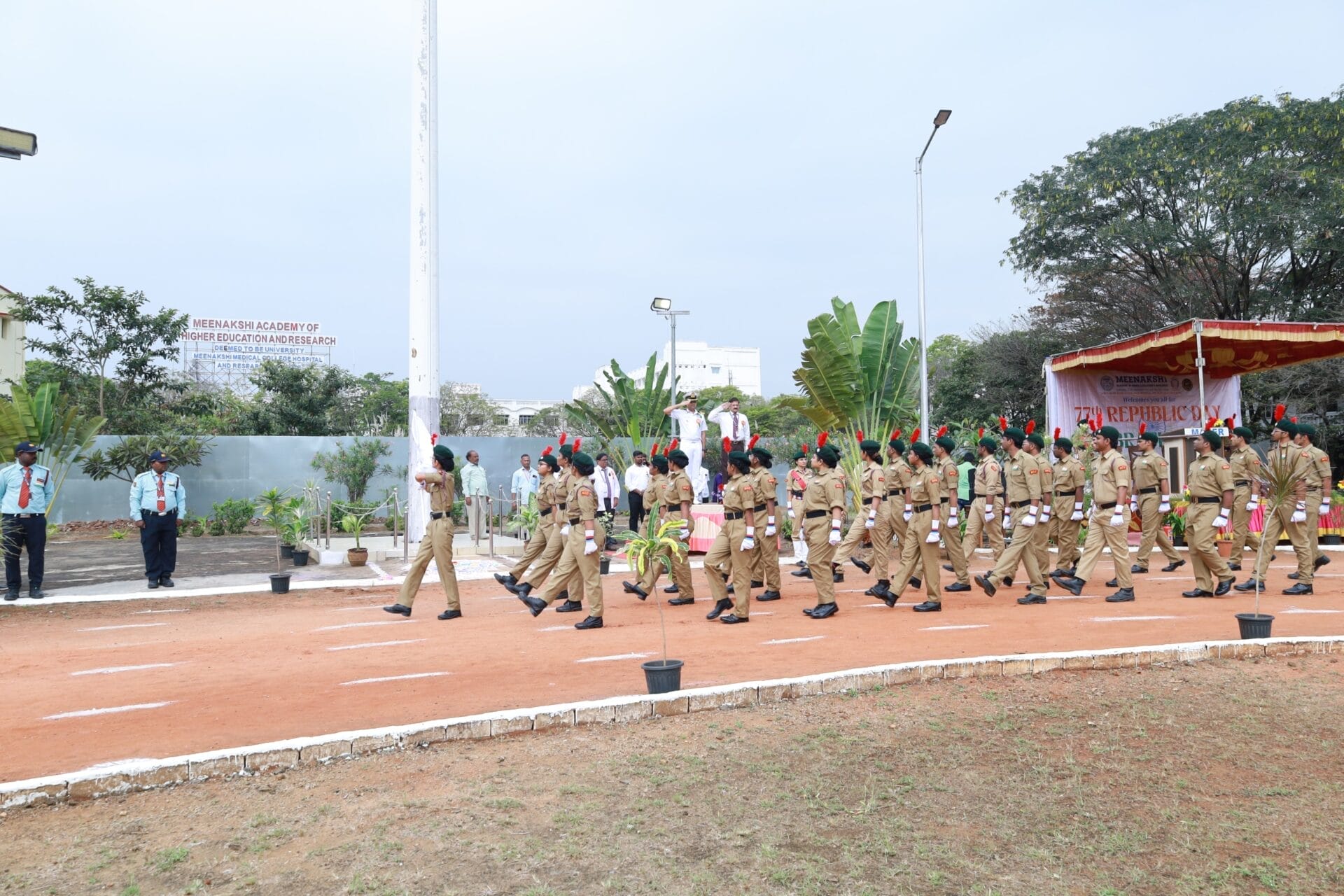 Meenakshi Medical College Hospital & Research Institute (MMCH&RI), Enathur, Kanchipuram, commemorated the 76th Republic Day on 26th January 2026 with great patriotism, dignity, and national pride. The ceremony was held at 9.00 a.m. near the Athletic Track (opposite the Old Girls’ Hostel) and witnessed enthusiastic participation from faculty members, staff, students, and NCC cadets.