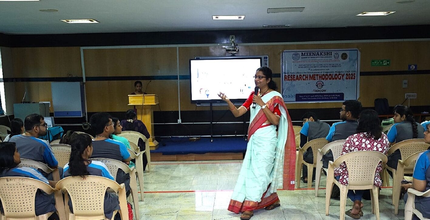 The Research Methodology Workshop 2025 was successfully conducted by the Department of Community Medicine and the Research and Development Committee at Meenakshi Medical College Hospital and Research Institute, in collaboration with the Tamil Nadu Alliance for Development of Community Medicine (TADCOM). The two – day workshop, held on April 2nd and 3rd 2025, was aimed at enhancing participants’ knowledge and skills in research methodologies, study designs, statistical analysis, and scientific writing.