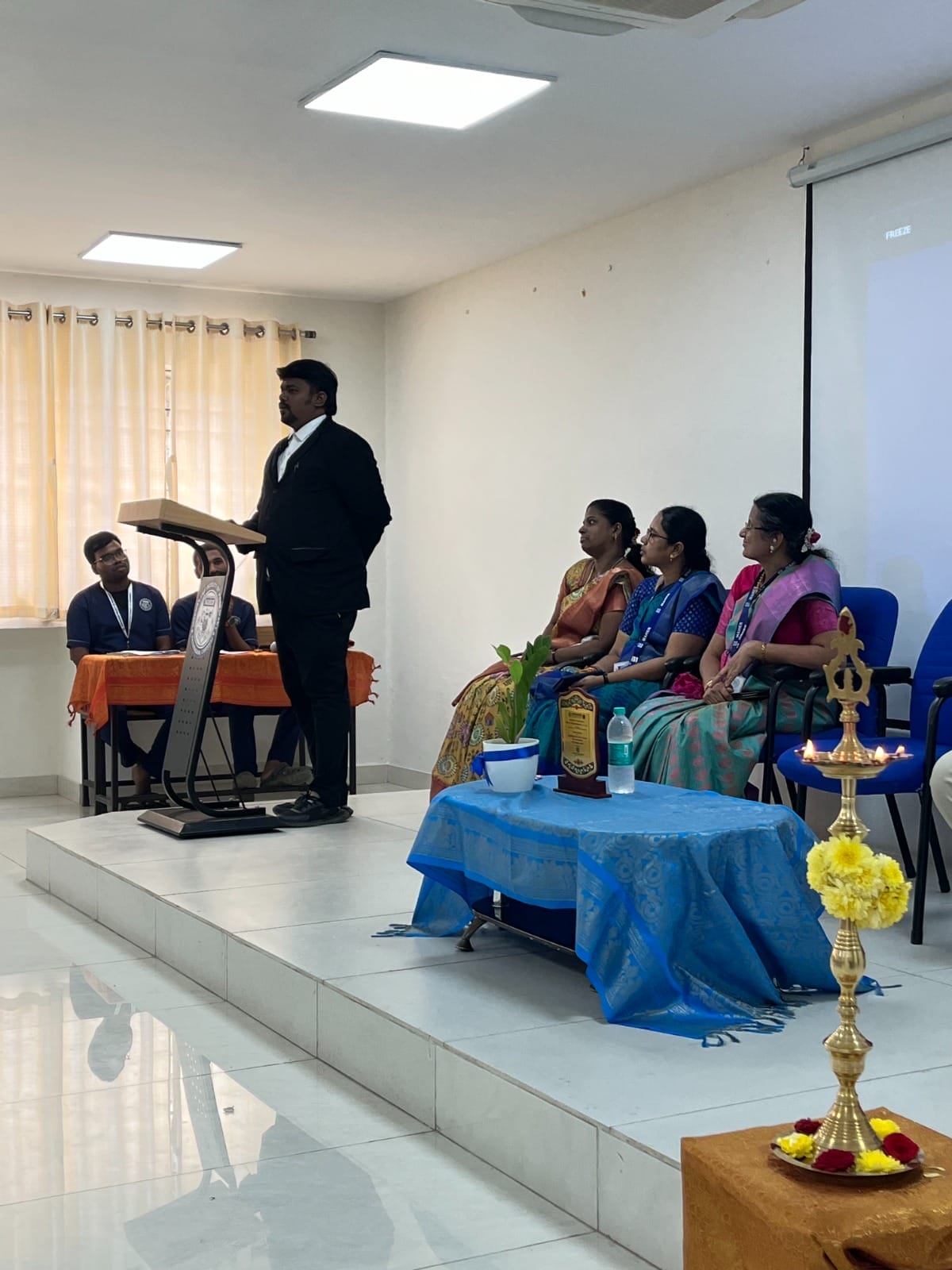 The Chief Guest was felicitated by the Principal and Heads of Departments. Mr. Rajavignesh delivered an insightful and informative talk, emphasizing traffic rules and regulations, government initiatives on road safety, and the serious legal and social consequences of road accidents. His session effectively addressed the causes of road rage and stressed the importance of self-control, awareness, and responsible driving practices.