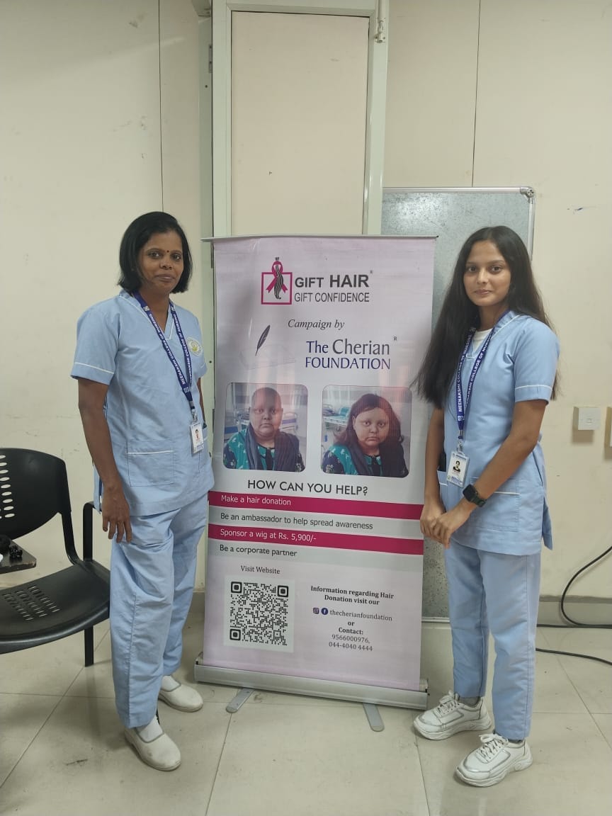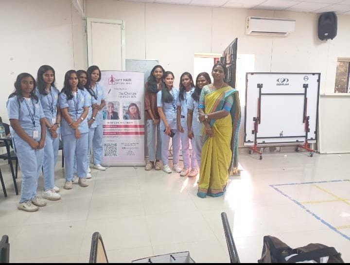 Ten students from Meenakshi College of Nursing selflessly donated their hair in support of this humanitarian cause. Their compassionate contribution symbolized empathy and solidarity with individuals battling cancer.
