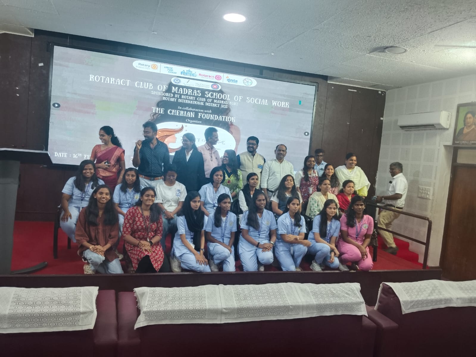 To commemorate World Cancer Day on 4th February 2026, the Rotaract Club of Meenakshi College of Nursing actively participated in a hair donation camp titled “Gift of Hope,” organized by the Rotaract Club of Madras School of Social Work. The initiative aimed to collect hair donations for the preparation of wigs to support cancer patients undergoing chemotherapy, thereby restoring confidence and emotional well-being during treatment.