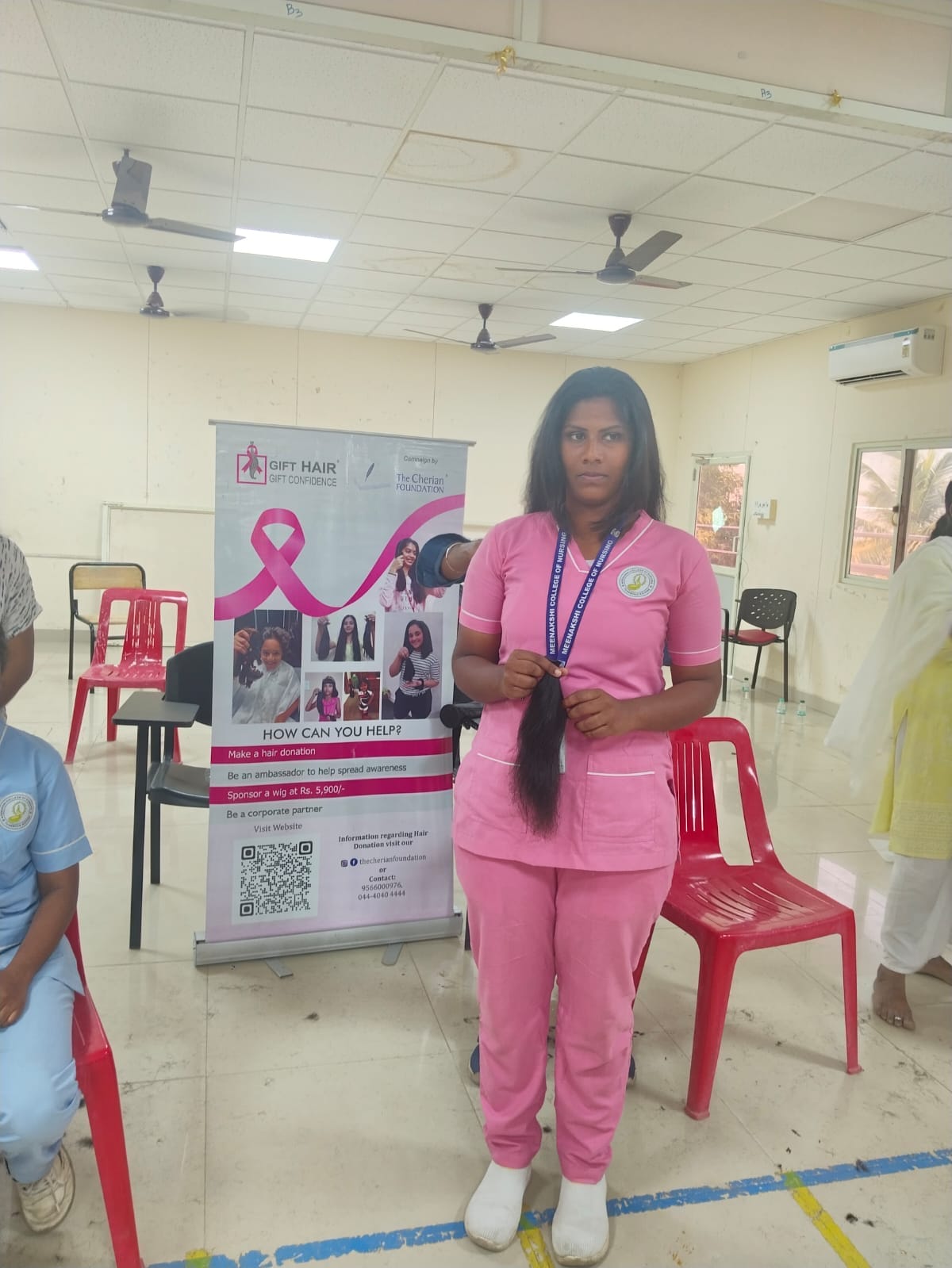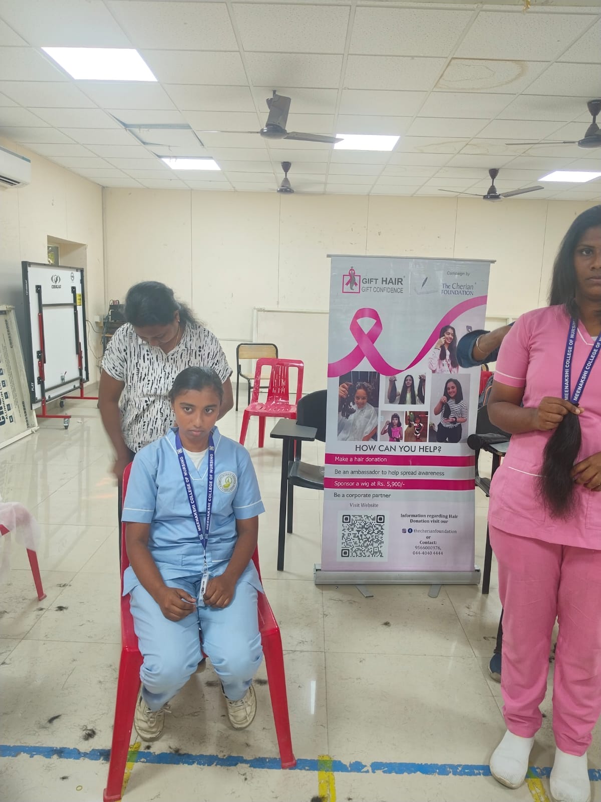Ten students from Meenakshi College of Nursing selflessly donated their hair in support of this humanitarian cause. Their compassionate contribution symbolized empathy and solidarity with individuals battling cancer.