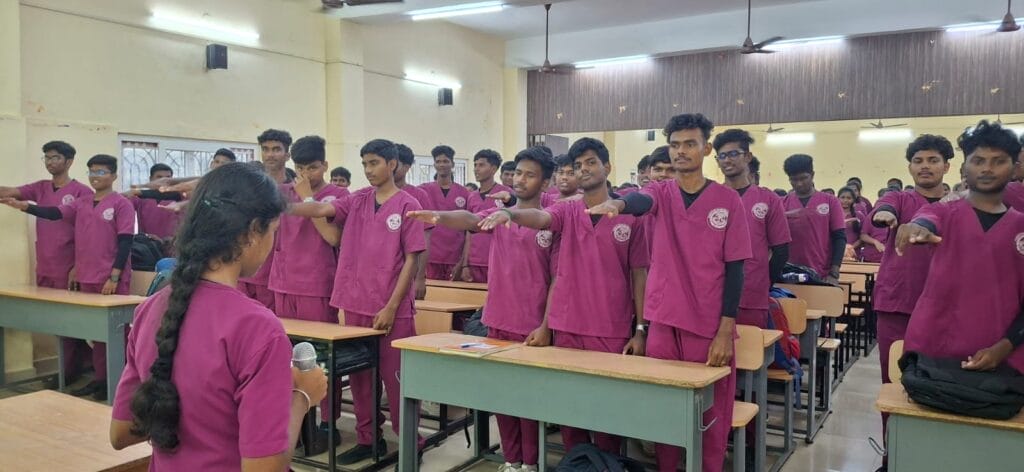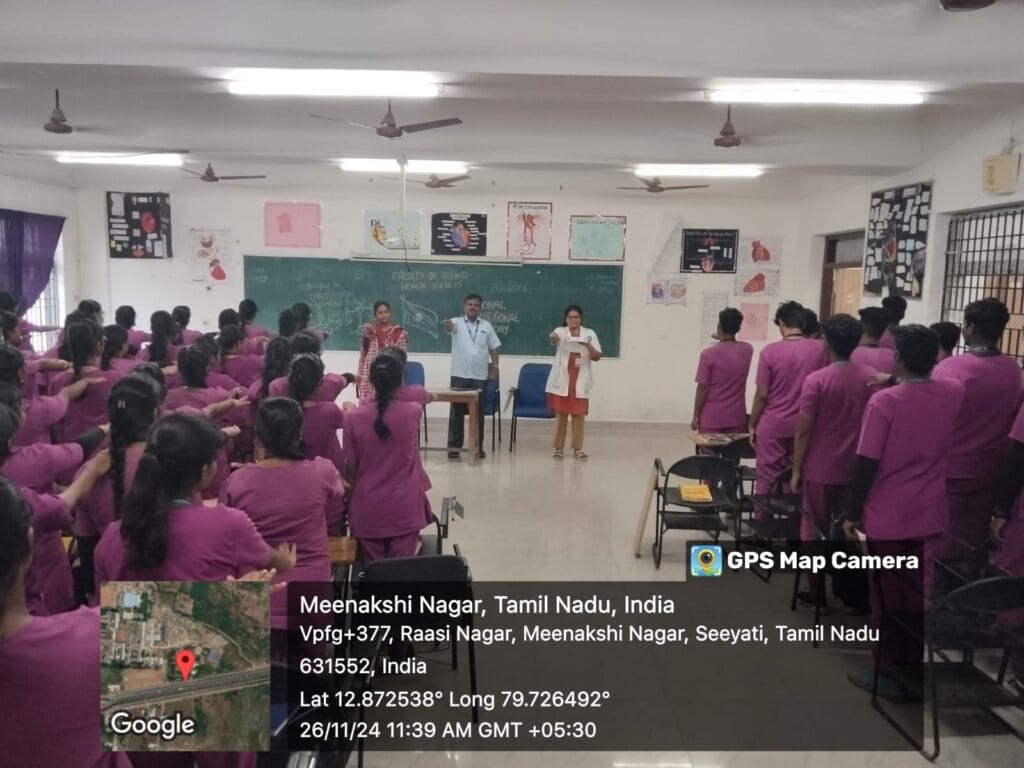 Faculty of Allied Health Sciences, MAHER celebrated Samvidhan Divas for 1st year AHS students on 23.11.2024 at MADC campus, Maduravoyal and for II & III year AHS students on 26.11.2024 at MMCHRI, Kancheepuram campus to commemorate the adoption of the Indian Constitution. The event was graced by the esteemed presence of Mr .S. V. Rakesh Ayyappan B.Sc., LL.B. (Hons) Advocate at Madras High Court and Expert in Criminal Matters who delivered an insightful address on the importance of the Constitution in shaping the democratic and legal framework of the country. As part of the celebrations, a solemn Pledge Ceremony was organized, around 230 students of both the campus and faculty members took a collective oath to honour and uphold the principles laid down in the Constitution. The pledge was led by Prof Dr. V. Ramnath Principal, Prof. Dr. K. S. Sridevi Sangeetha VP academics and Dr. B. Durga VP admin of FAHS encouraged students to not only understand the significance of the Constitution but also to embody its values in their daily lives. The event concluded with a vote of thanks by Ms. Swetha .M Assistant professor, Department of Microbiology.